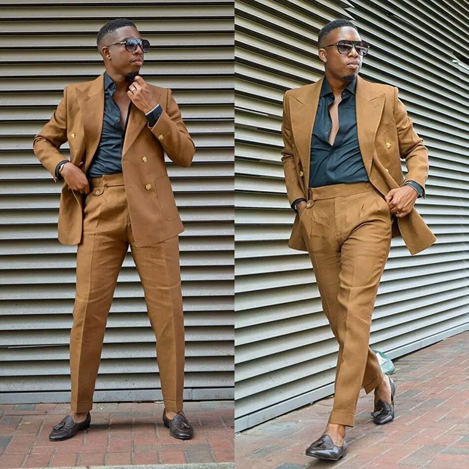 Traje de novio marrón claro para boda, esmoquin con solapa de pico para hombre, traje formal de negocios para graduación, traje de 2 piezas (chaqueta + pantalón)