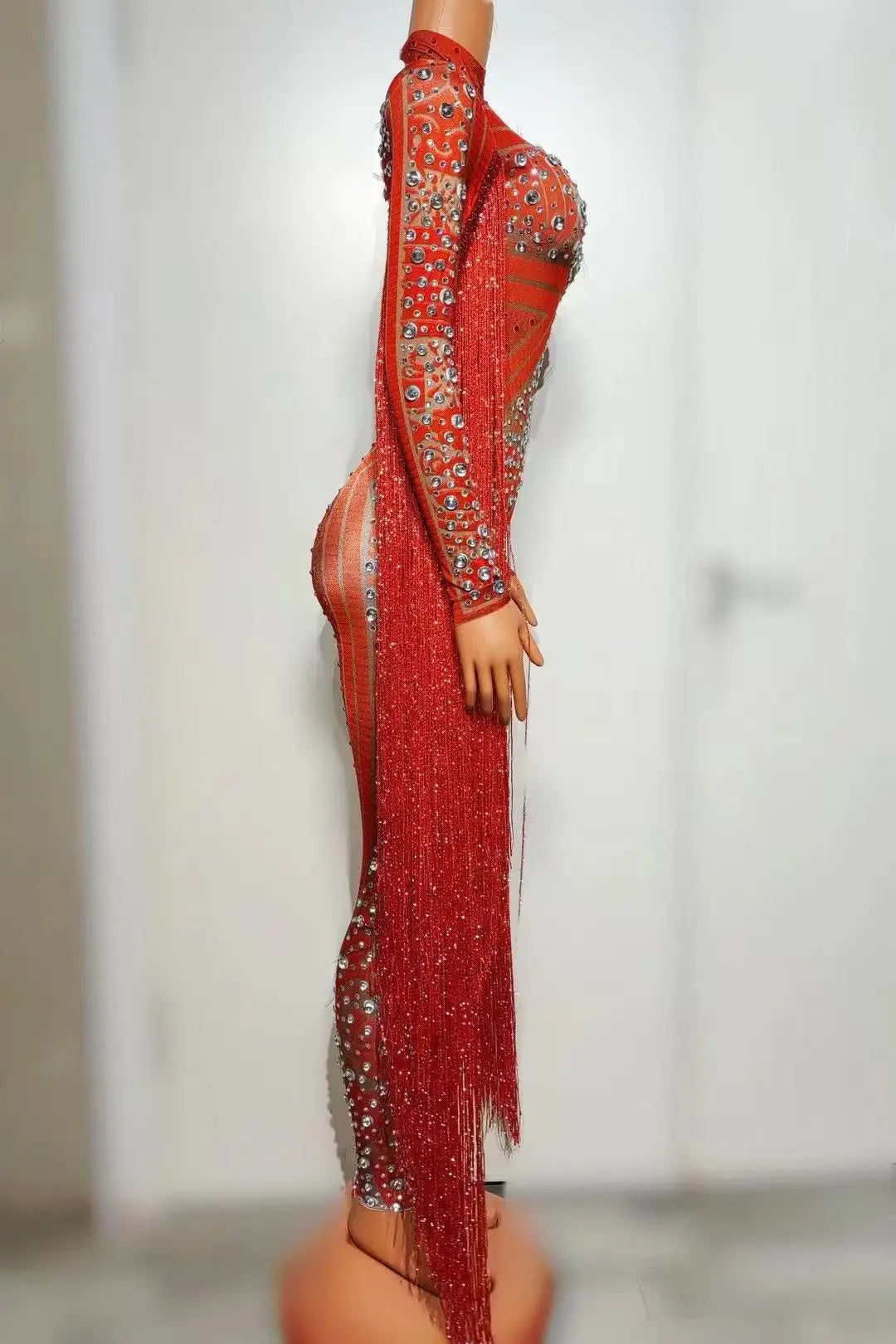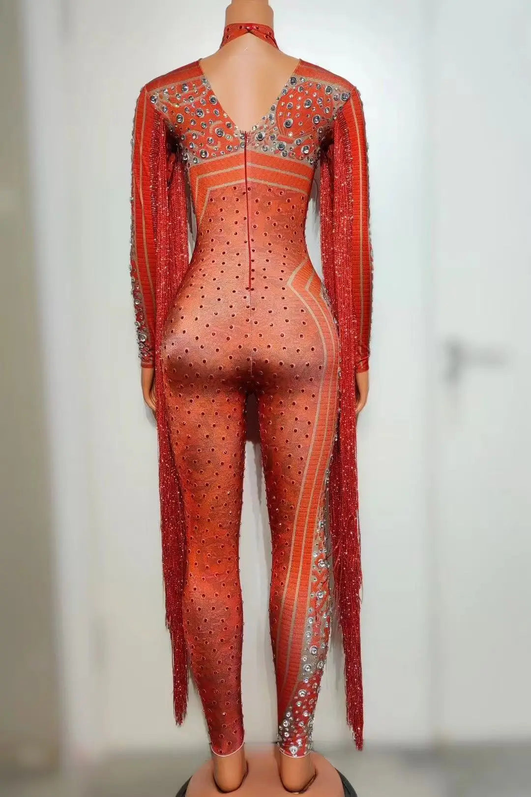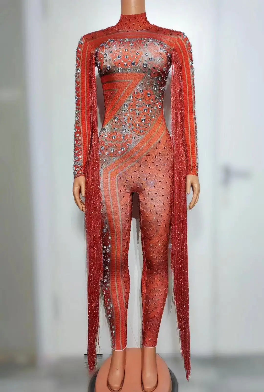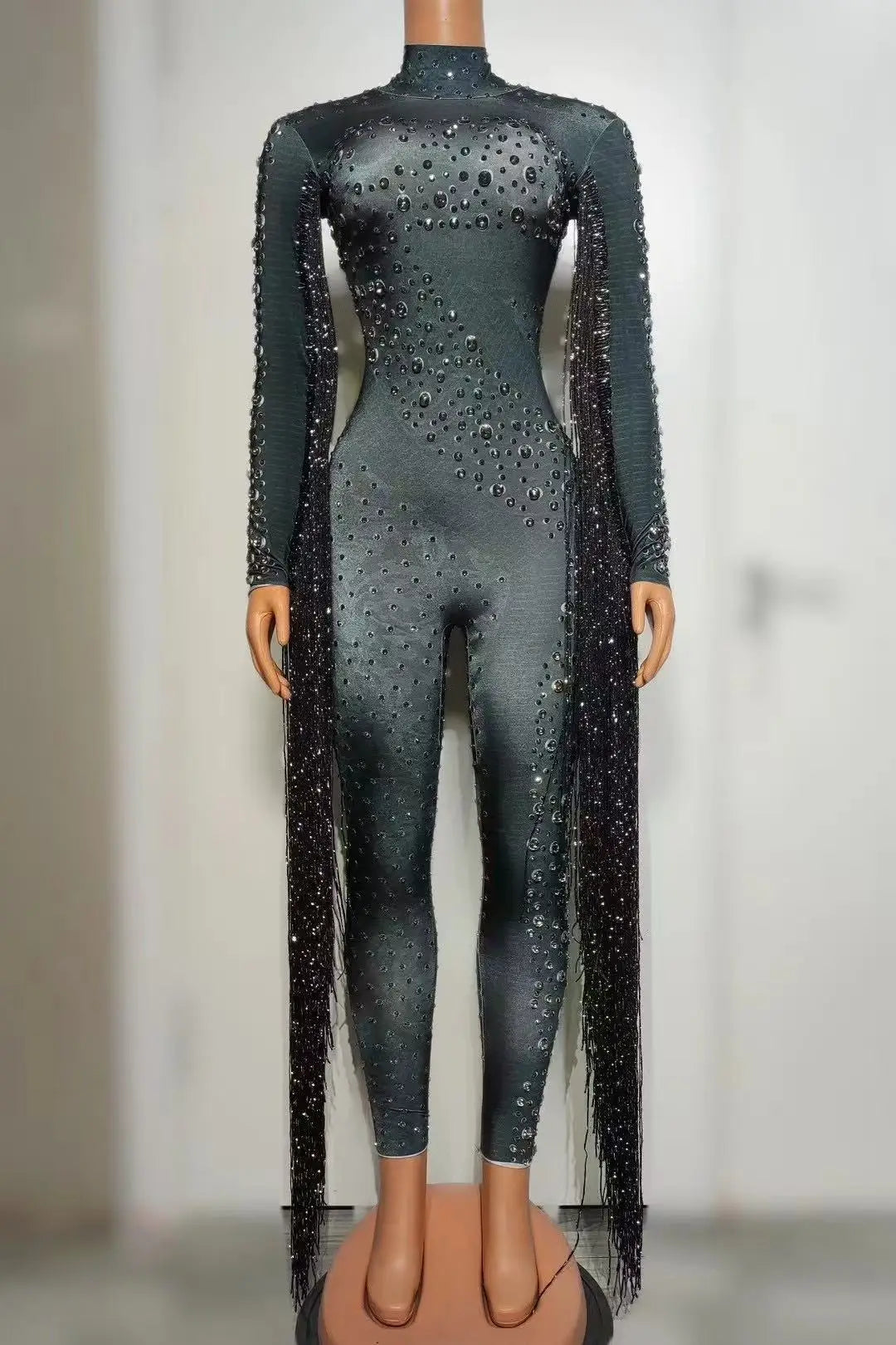 Destaca con este impresionante mono de manga larga para mujer, diseñado para actuaciones inolvidables. Este traje de una pieza luce deslumbrantes lentejuelas de diamante, brillantes pedrería y elegantes borlas que se mueven con cada paso. El mono blanco ofrece un look glamuroso y llamativo, perfecto para noches de club, espectáculos o eventos especiales. Luce tu estilo y confianza con este llamativo mono de alta calidad, diseñado para mujeres que aman brillar.