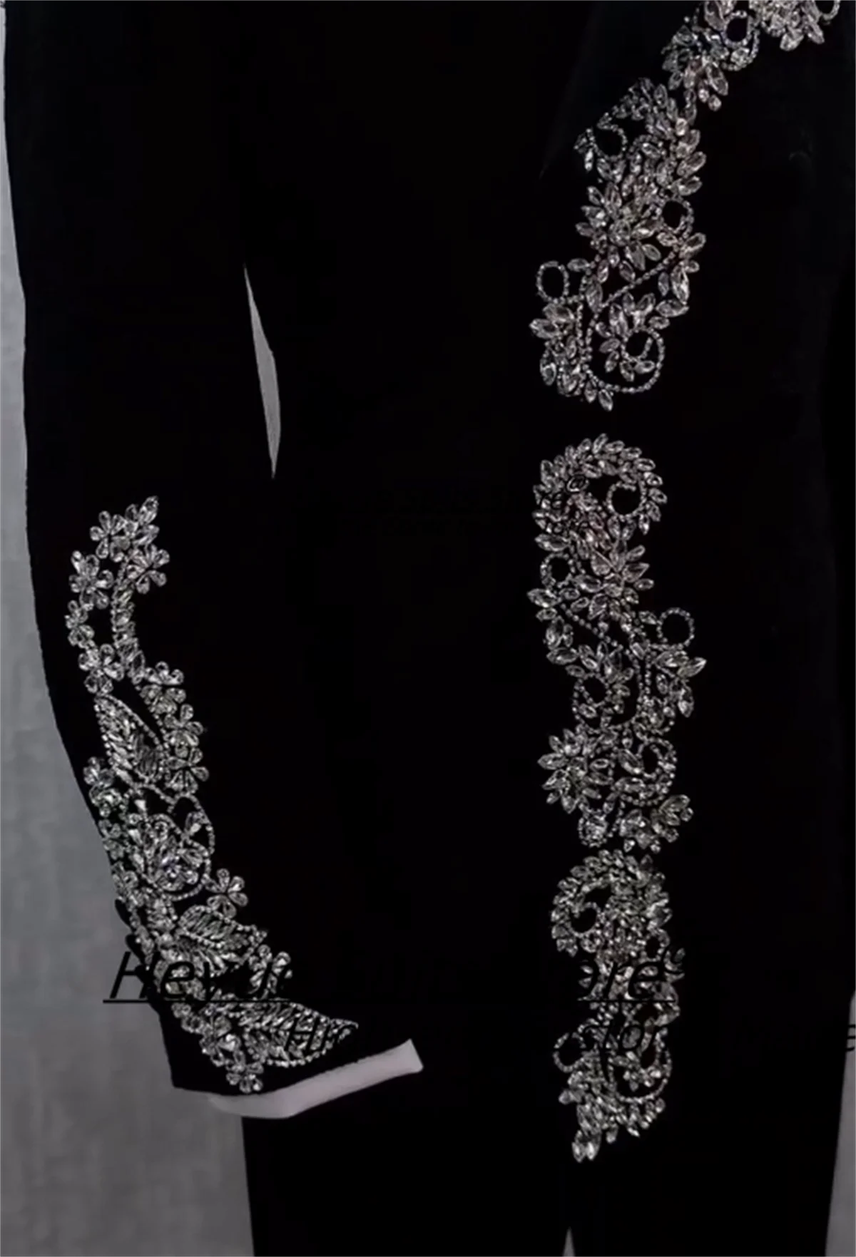 Luxuly Crystal Beads Men Suits Slim Fit Peak Lapel Groom Wedding Tuxedos 2 Pieces Sets Male Prom Blazers Customized Ropa Hombre