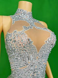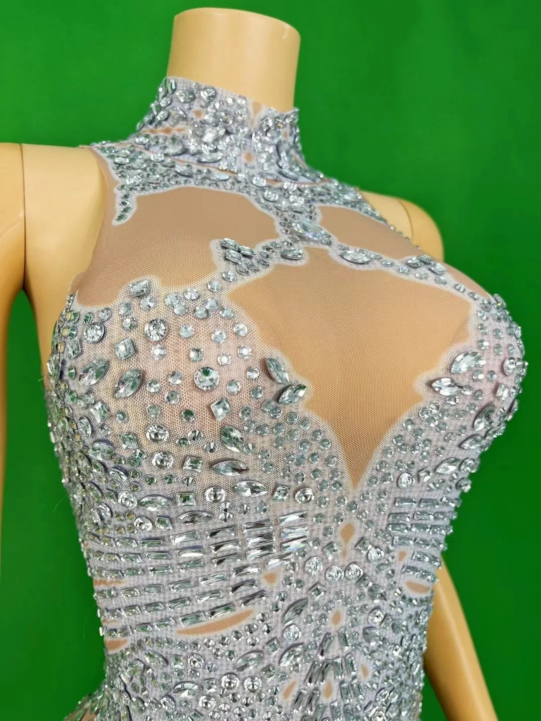 Shine bright at any special occasion in this elegant sleeveless party dress, designed for women who want to make a statement. Featuring sparkling rhinestones and a sexy, see-through mesh design, this stretch evening gown perfectly hugs your curves for a flattering fit. An ideal choice for proms, birthdays, and glamorous parties, this stunning dress is sure to turn heads all night long.