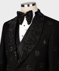 Realza tu atuendo formal con nuestro lujoso esmoquin con pedrería, un impresionante conjunto de tres piezas diseñado para el hombre moderno. Este sofisticado traje incluye blazer, chaleco y pantalón a medida, todos adornados con exquisitas cuentas de pedrería que le aportan un toque de opulencia. Perfecto para bodas, cenas y graduaciones, este esmoquin irradia elegancia y estilo. Tanto si eres el novio como un invitado, causa una impresión inolvidable con este look a medida que combina tradición con un toque contemporáneo.