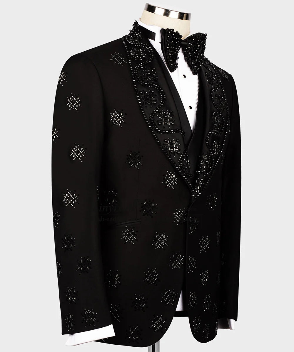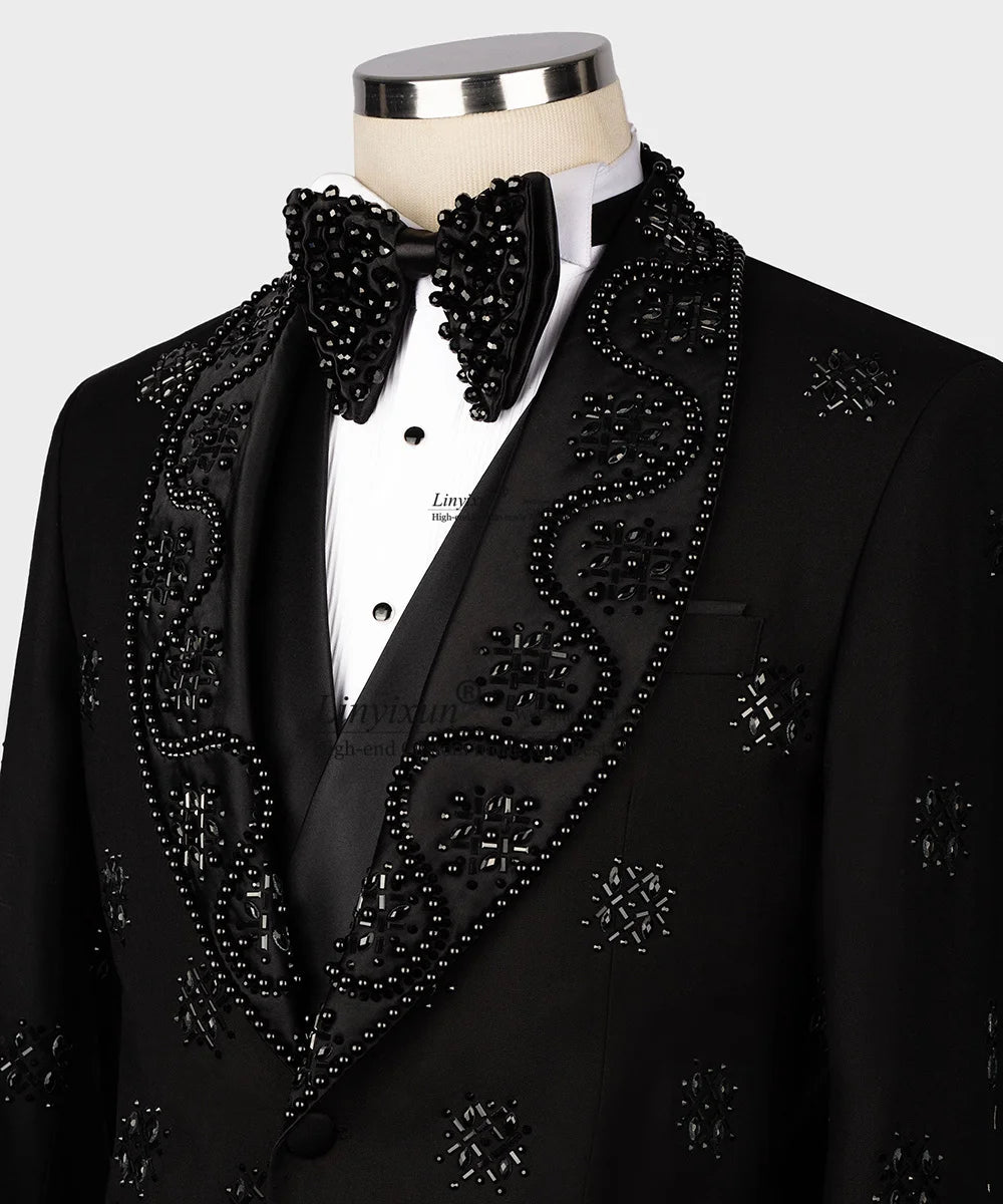 Elegante esmoquin con cuentas y diamantes de imitación para hombre: traje de boda de 3 piezas, perfecto para el novio, cenas y eventos de graduación.