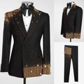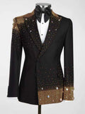 Luxurious Beaded Wedding Tuxedos 2 Piece Set Jacket Pants Black Men Suit Crystal Groom Wear Party Evening Suits Customized