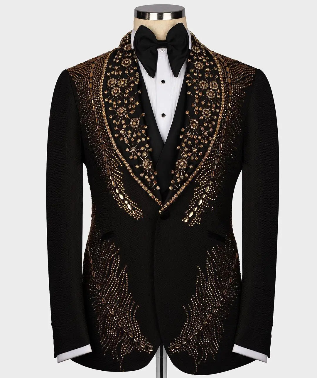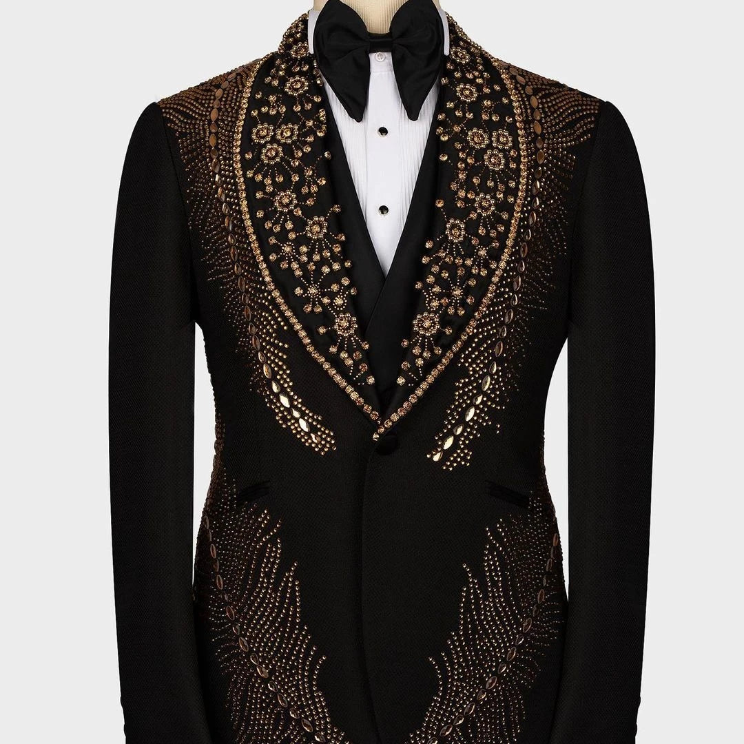 Realza tu vestuario formal con nuestro Blazer Enterizo Brillante de Lujo con Cuentas y Diamantes, diseñado para el caballero más exigente. Este exquisito traje presenta un sofisticado cierre de un botón y una solapa ancha, bellamente adornado con cuentas brillantes y detalles de diamantes que capturan la luz con cada movimiento. Ideal para graduaciones, bodas y otras ocasiones formales, este blazer combina la elegancia atemporal con un toque moderno. Disponible en tallas grandes y con un corte perfecto, te garantiza una impresión impactante en tu día especial.