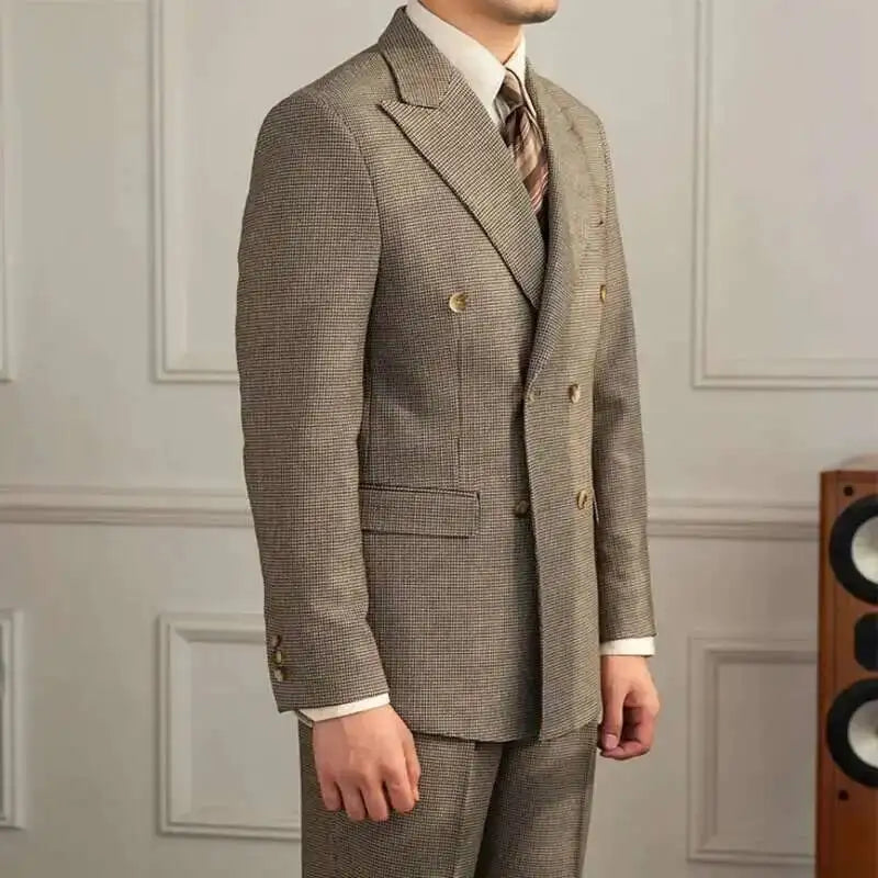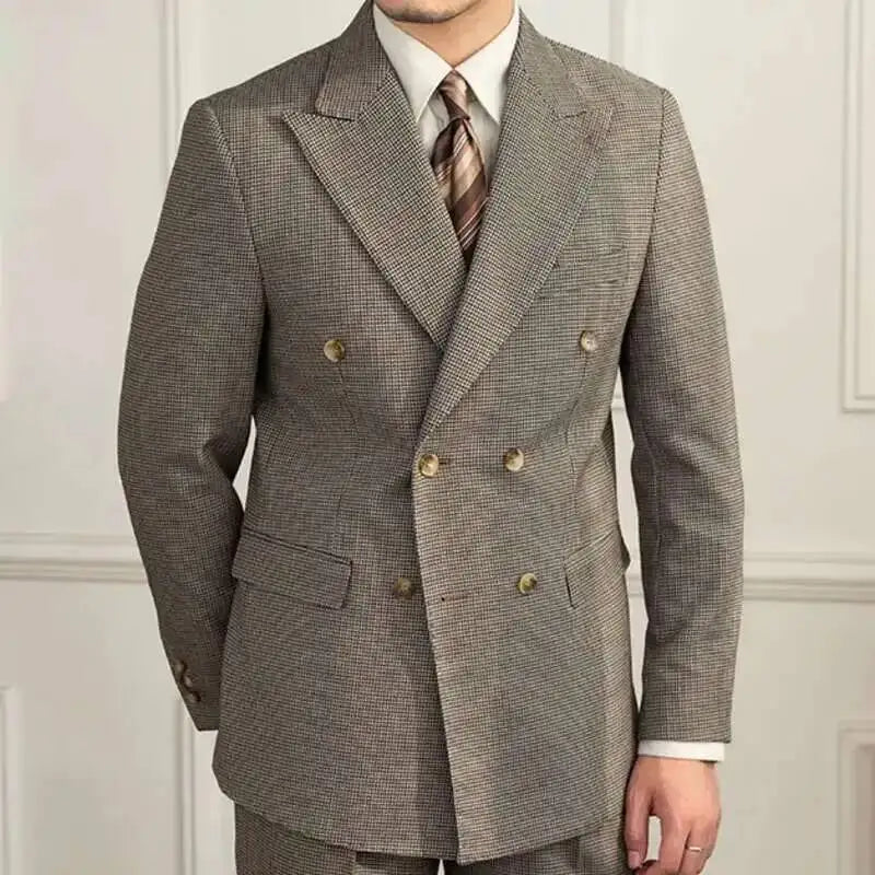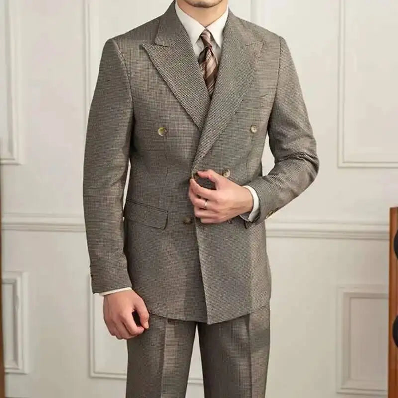 Luxury Business Suits for Men British Gentleman Double Breasted Formal Casual Dress Suits 2 Pieces Elegant Slim Costume Homme