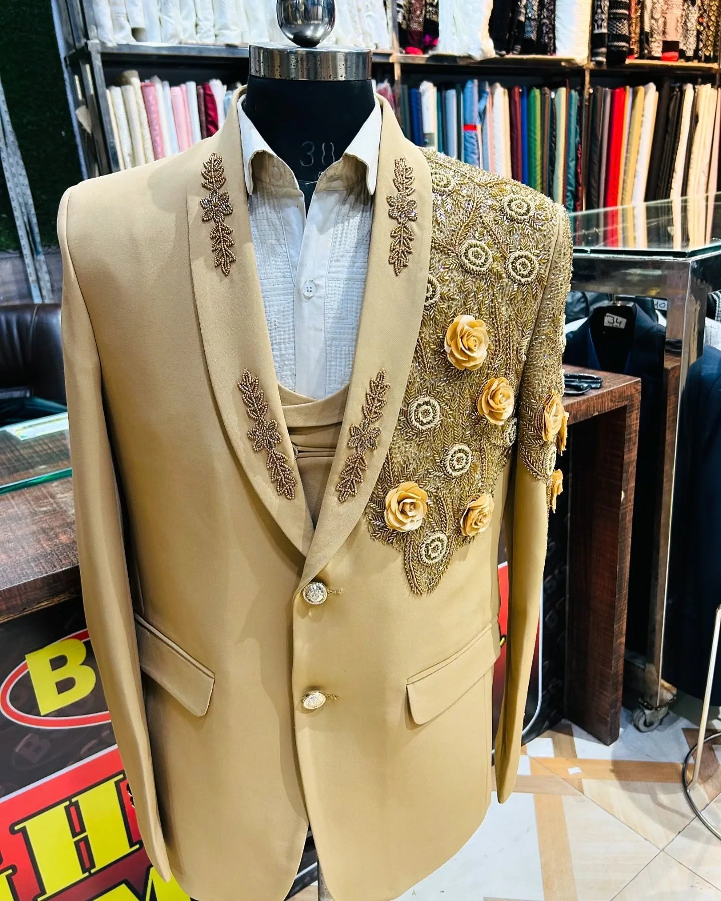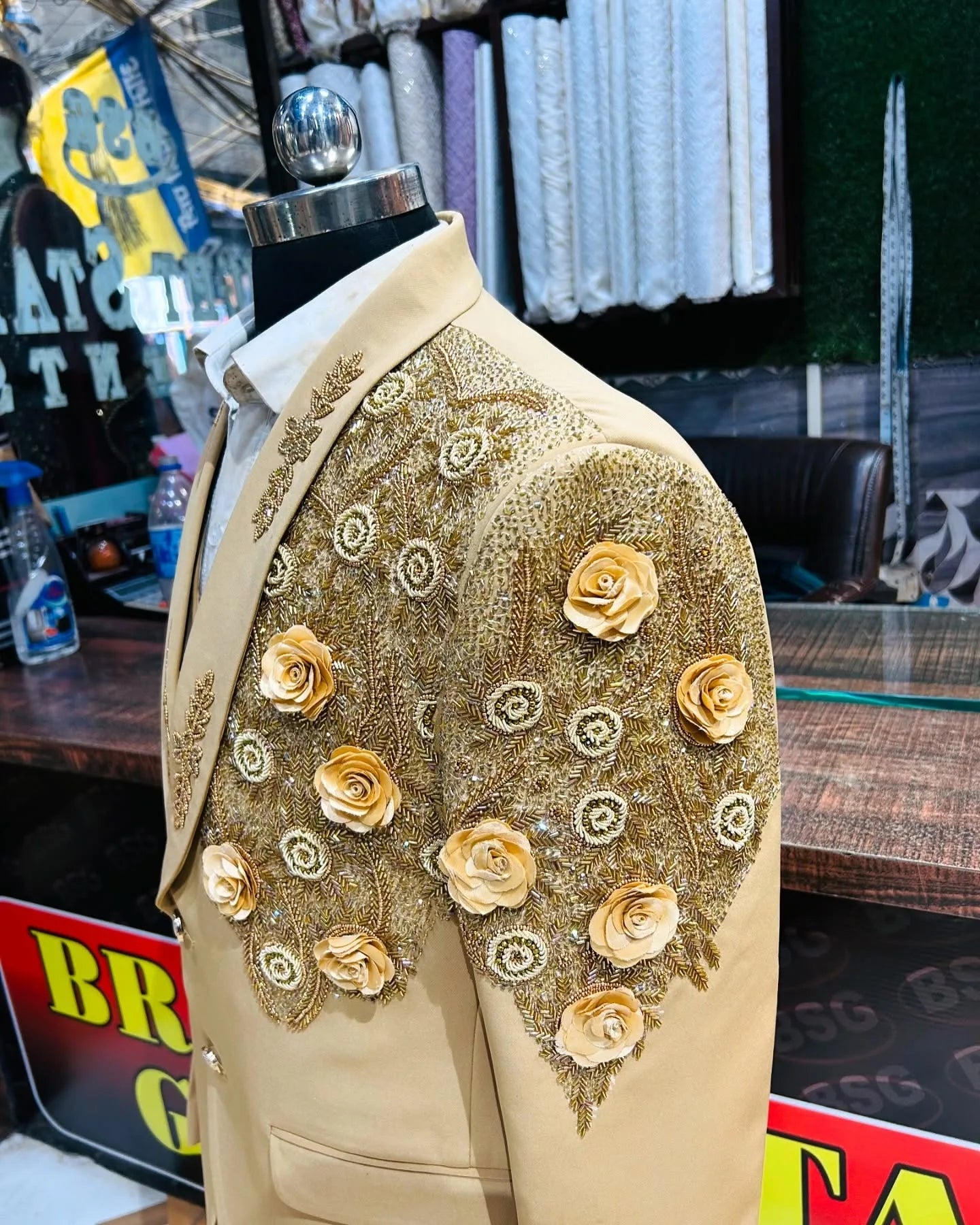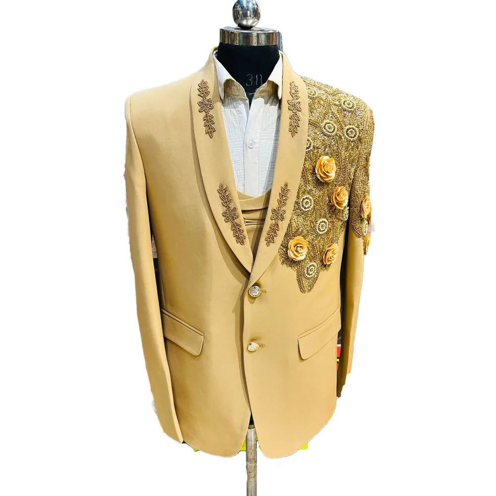 Luxury Men Suits Shawl Lapel 3D Flowers Tailor-Made One Pieces Set Jacket Only Blazer Beading One Button Groom Customized Coat