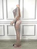 Luxury Rhinestones Chain Sheath Jumpsuit Women Evening Party Performance Costume Nightclub Singer Dancer Photoshoot Stage Wear