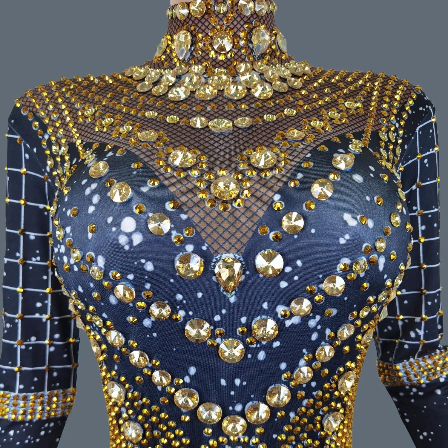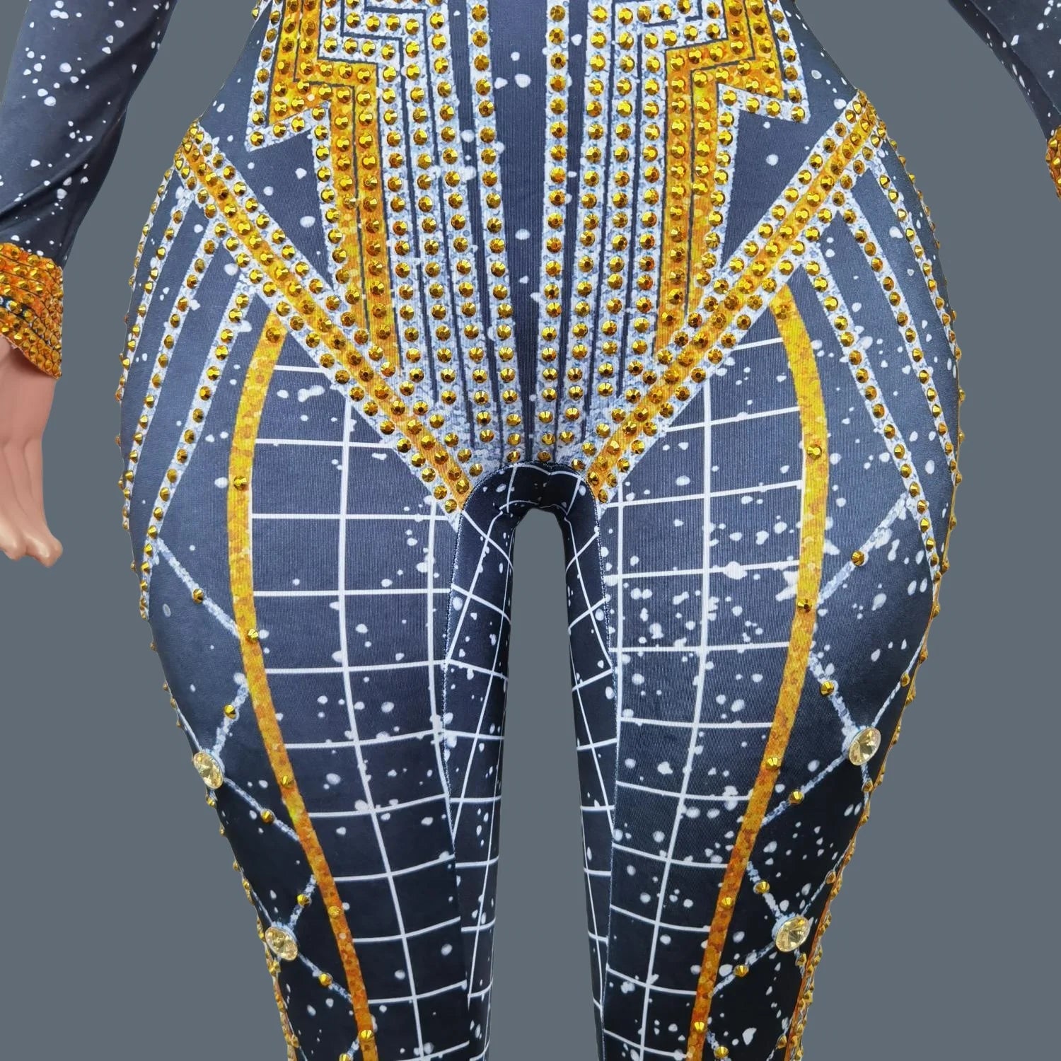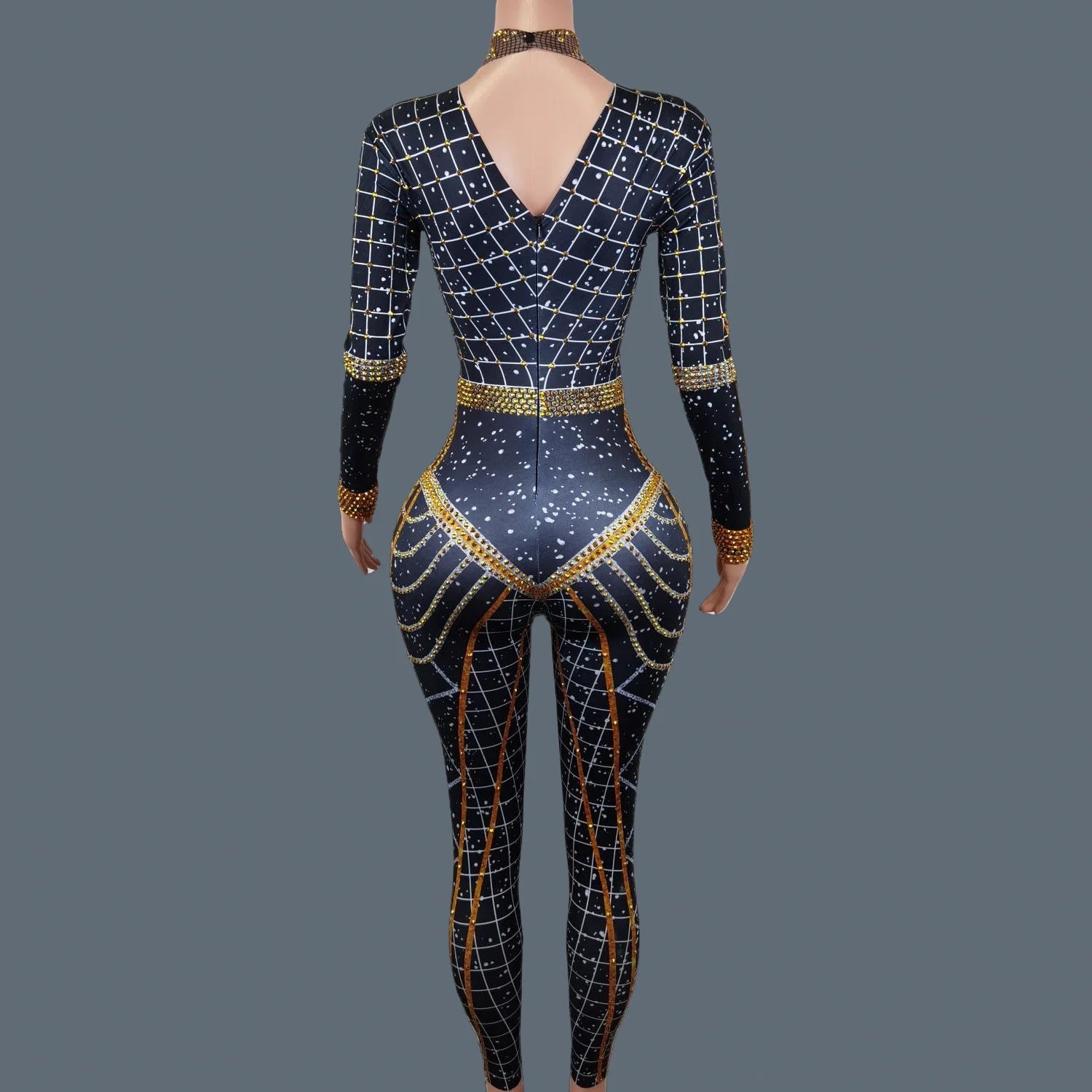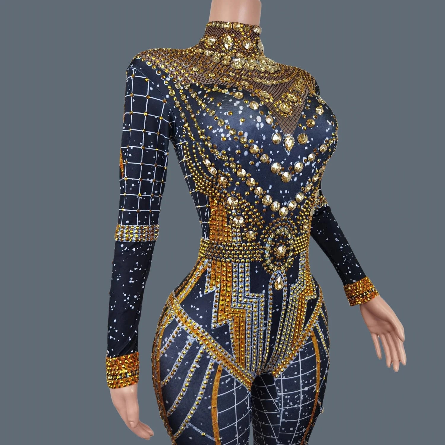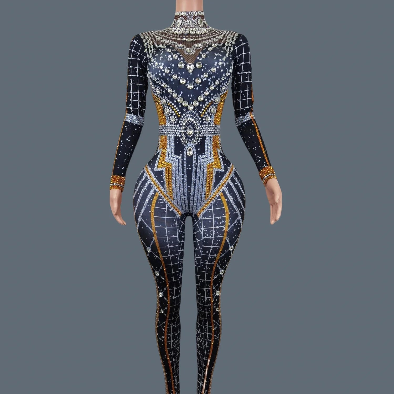 Luxury Sparkly Crystals Spandex Elastic Jumpsuit Nightclub Event Performance Stage Outfit Birthday Party Hot Women Wear Nvwang