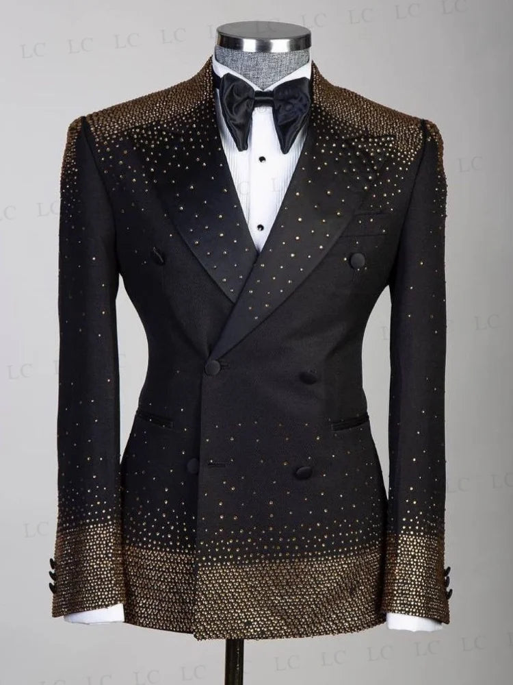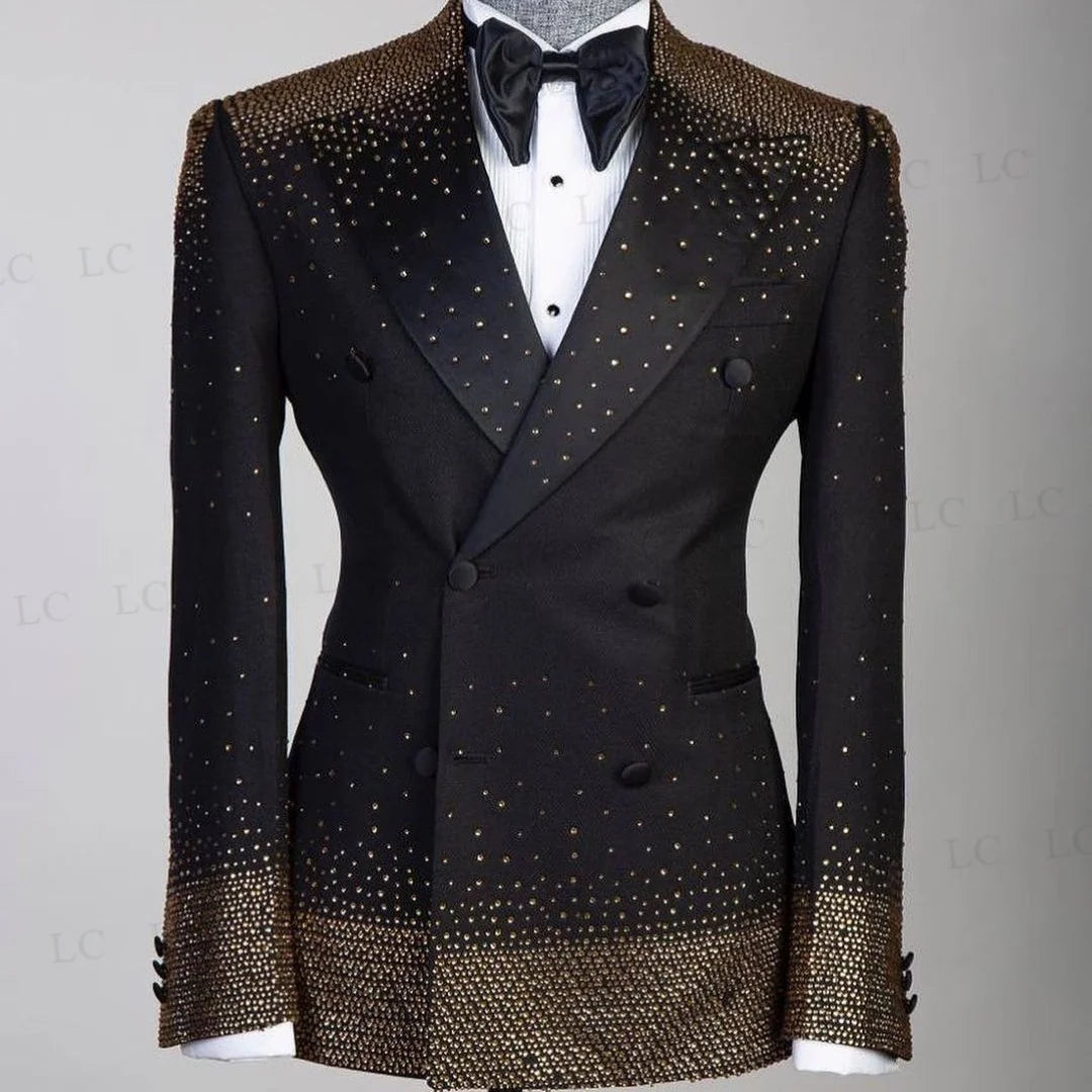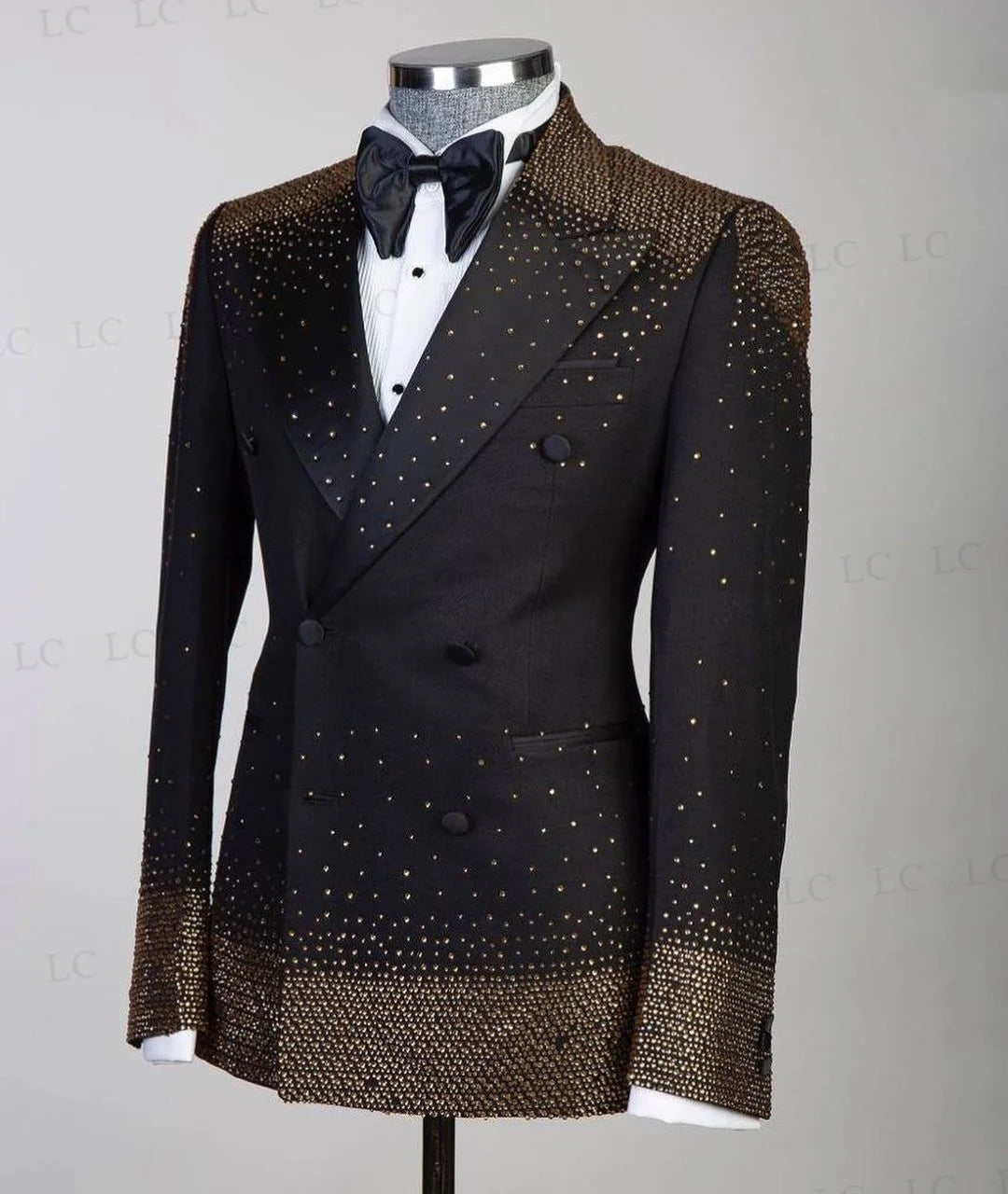 Elegante traje de esmoquin con cuentas para hombre. Lujoso conjunto de dos piezas de blazer y pantalón con adornos de cristal. Perfecto para bodas, bailes de graduación y eventos formales. Tallas grandes disponibles.