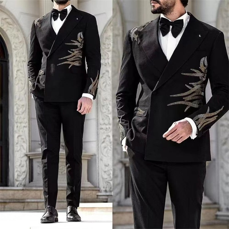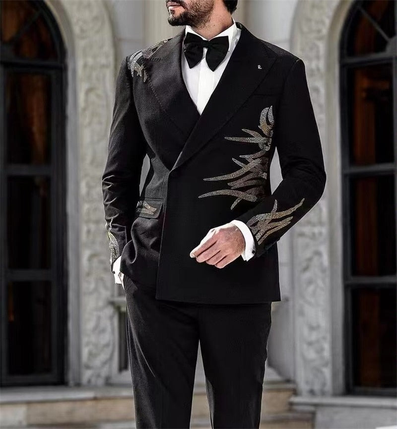 Conjunto de traje de pantalón para hombre, chaqueta y blazer, 2 piezas, con cuentas, para boda, esmoquin, vestido de graduación, oficina, negocios, abrigo, chaqueta y pantalones a medida.