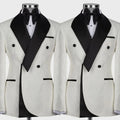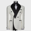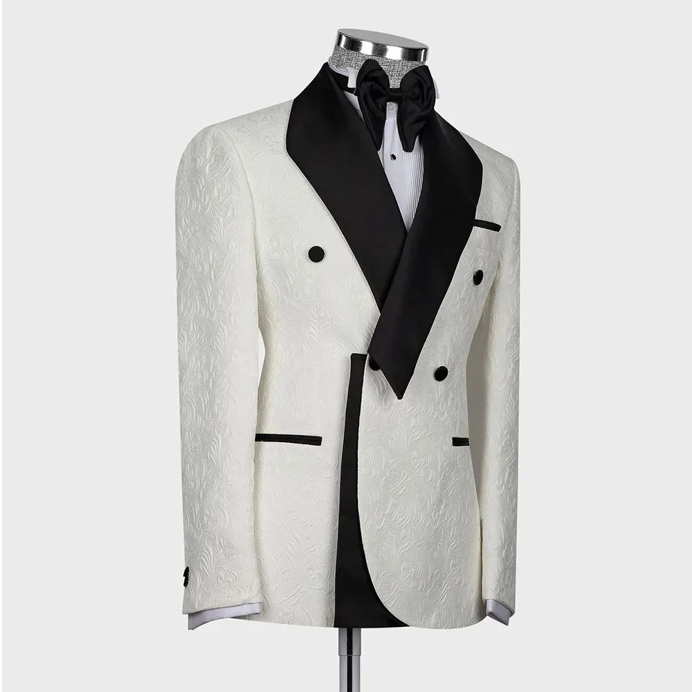 Make your wedding day unforgettable with this exquisite, tailor‑made one‑piece coat: a double‑breasted groom blazer crafted from luxurious jacquard fabric and finished with a graceful shawl lapel. Designed for the man who values craftsmanship, texture, and a distinctive formal silhouette, this customized jacket blends timeless tailoring with artisanal detail to create a singular statement piece.