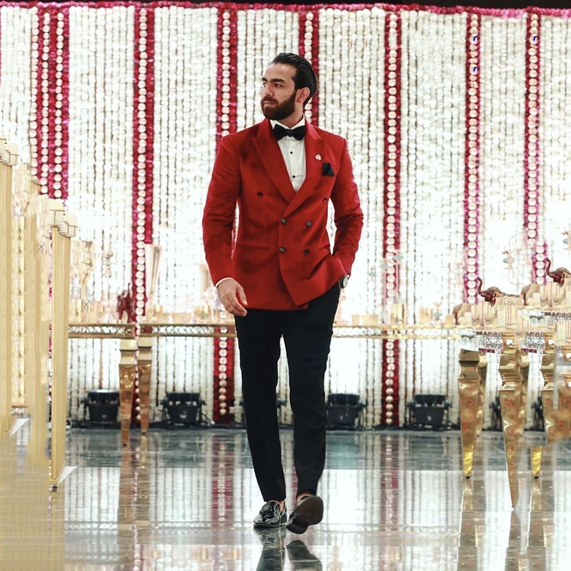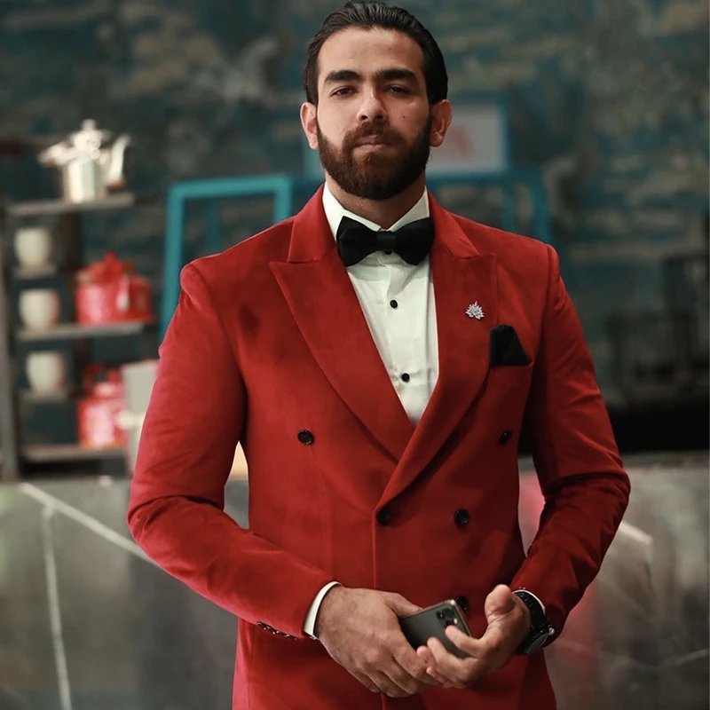 Traje de 2 piezas (chaqueta de terciopelo) para hombre, con solapa de pico y botones cruzados, esmoquin para negocios, informal, diario y ocio.