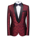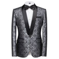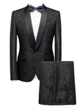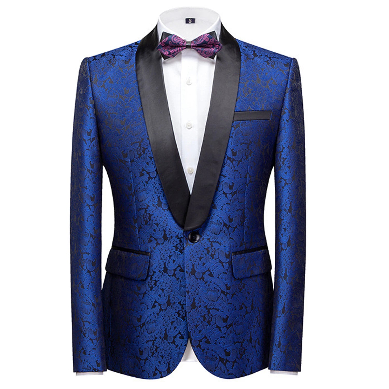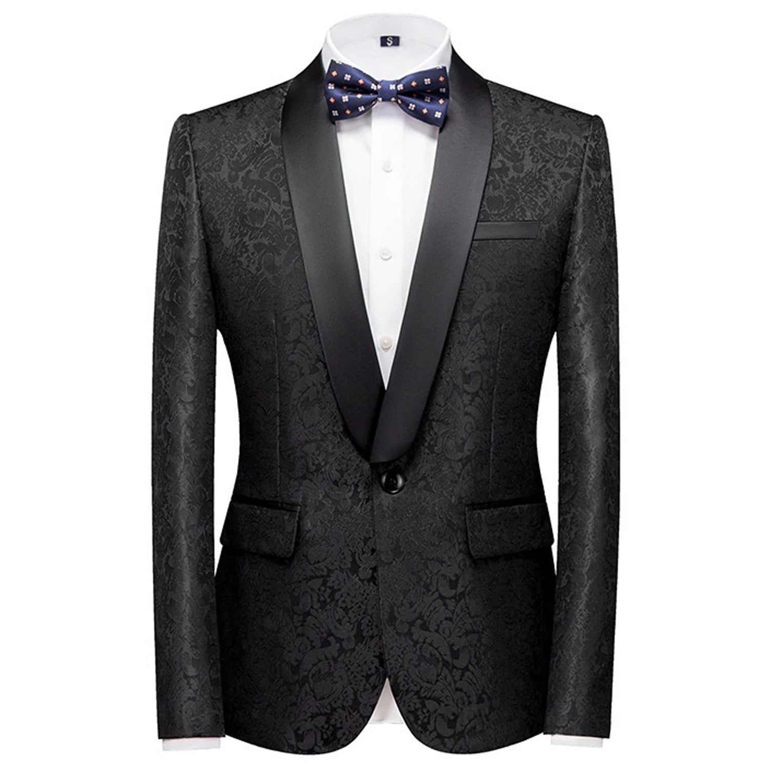 Elegante traje de esmoquin jacquard para hombre con solapa chal para bodas y eventos formales.