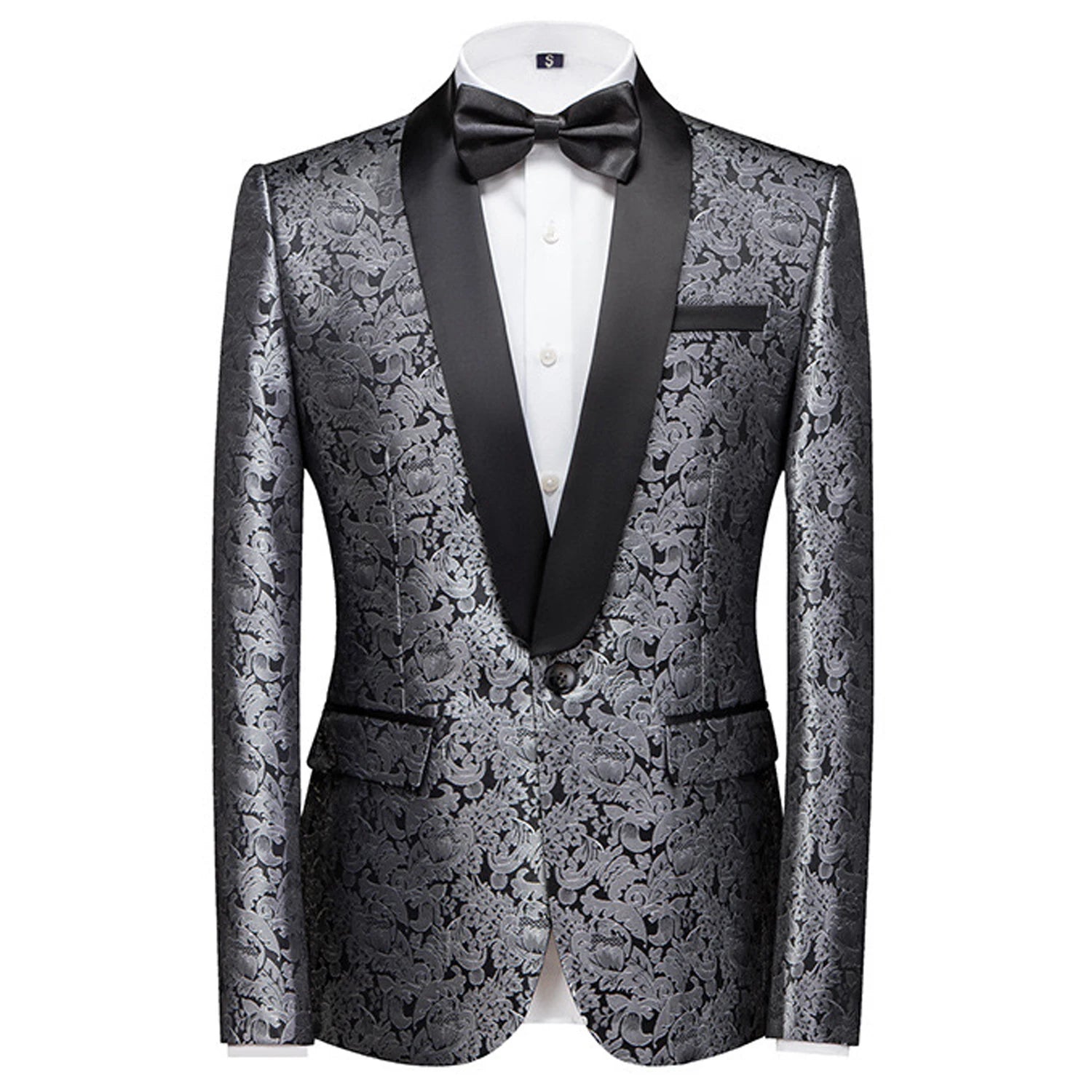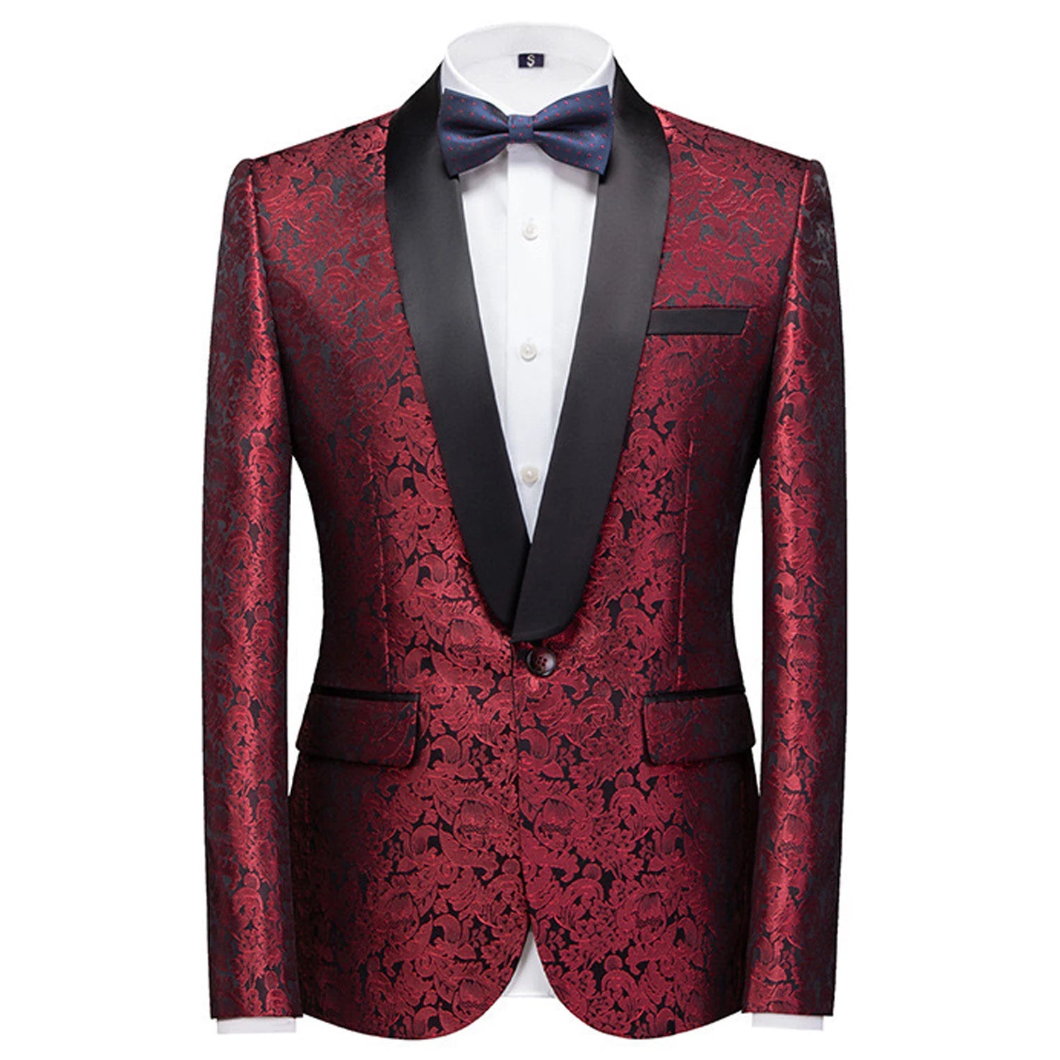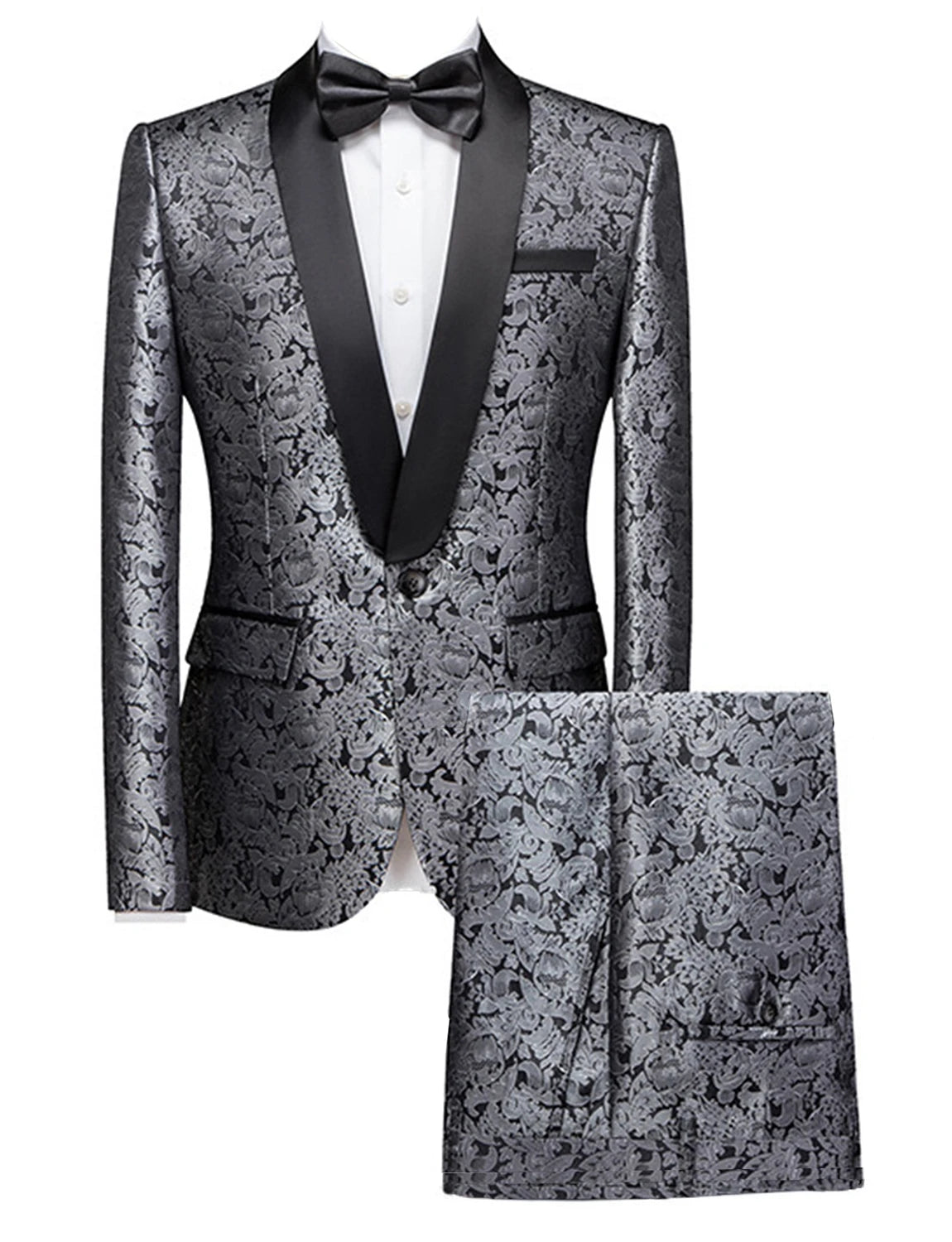 Realza tu atuendo formal con nuestro traje de jacquard de un botón para hombre, con un sofisticado diseño de dos piezas y elegante solapa chal. Perfecto para bodas, eventos formales o fiestas, este esmoquin combina elegancia y comodidad, lo que lo convierte en la opción ideal tanto para novios como para ocasiones de negocios. Confeccionado con atención al detalle, este traje ofrece un aspecto refinado que te hará destacar en cualquier ocasión especial. ¡Impresiona con este esmoquin atemporal!