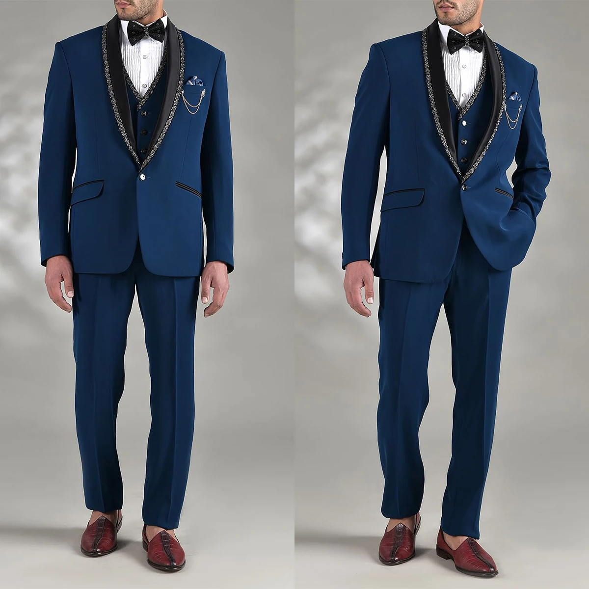 Traje de hombre de 3 piezas, blazer, chaleco, pantalón, solapa transparente, un botón, apliques, ropa formal de trabajo para novio, traje a medida de talla grande para hombre