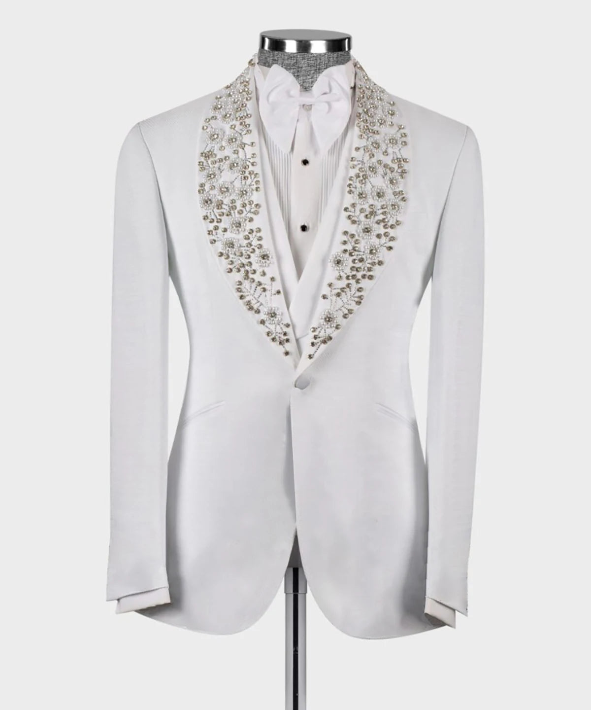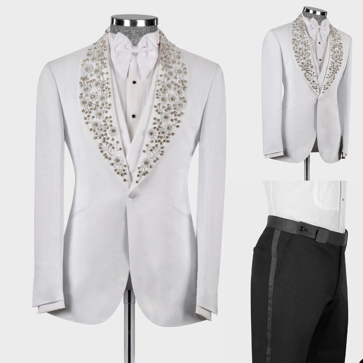 Traje de boda para hombre, diseño de esmoquin personalizado, apliques, chaqueta, 2 piezas, traje de novio, pantalones