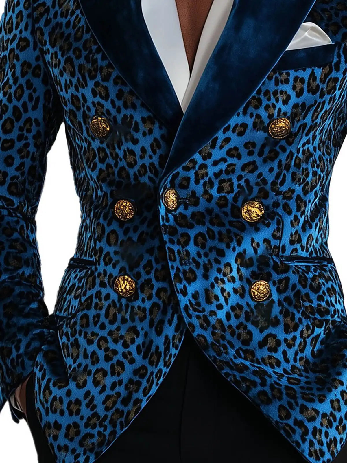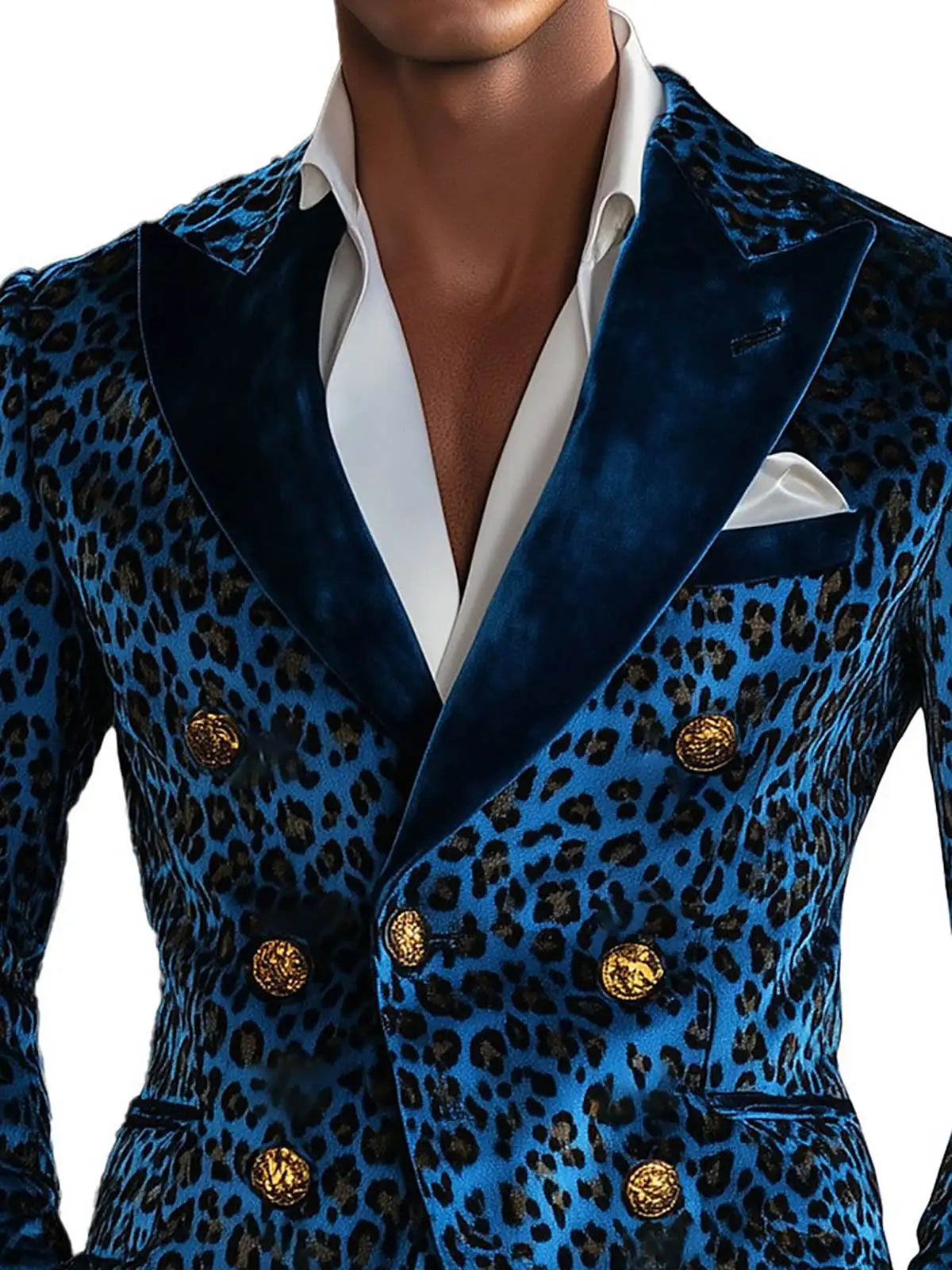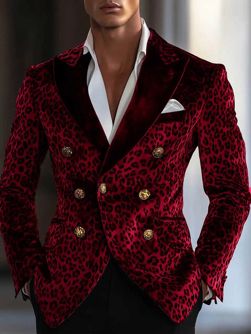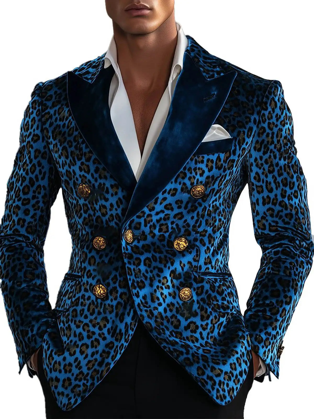 A bold, fashion-forward single-item blazer that blends contemporary tailoring with statement animal-print styling. This Modern Leopard-Print Double‑Breasted Jacket is designed for grooms, performers, and style-conscious men who want to stand out at weddings, parties, and upscale events while keeping the proportions and fit of classic formalwear.