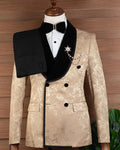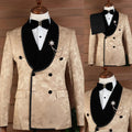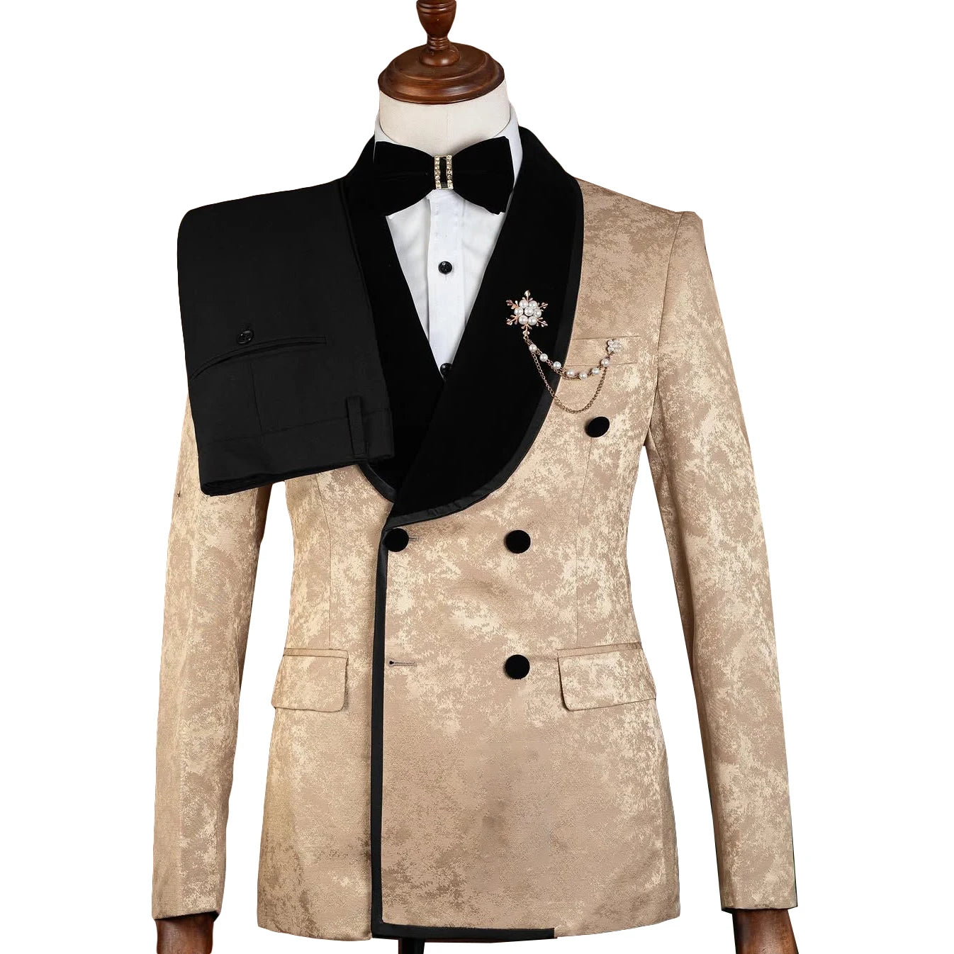 Modern Men Suits Jacquard 2 Pieces Set Tailor-Made Velvet Jacket Shawl Lapel Blazer Double Breasted Groom Customized Coat Pants