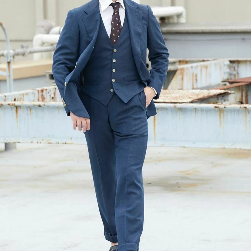 Traje azul marino para hombre, dos botones, solapa de pico, para novio, boda, fiesta de graduación, cena, esmoquin, hecho a medida, 3 piezas