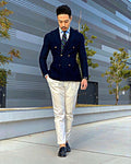 Trajes de hombre azul marino Peaky Blinders de dos piezas de poliéster de diseñador, esmoquin de boda, hecho a medida, chaqueta, pantalones, vestido de fiesta.