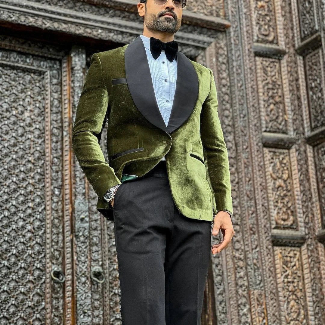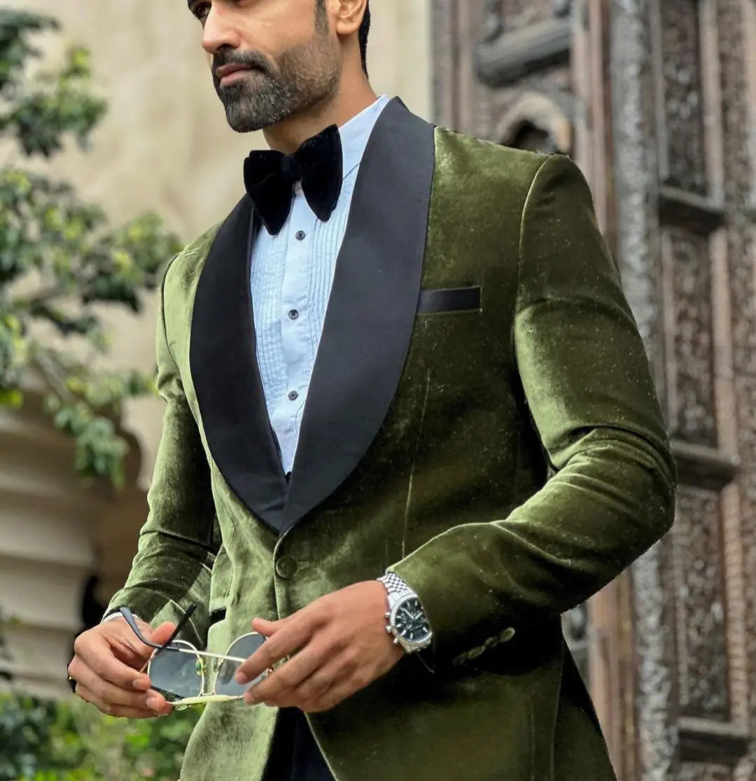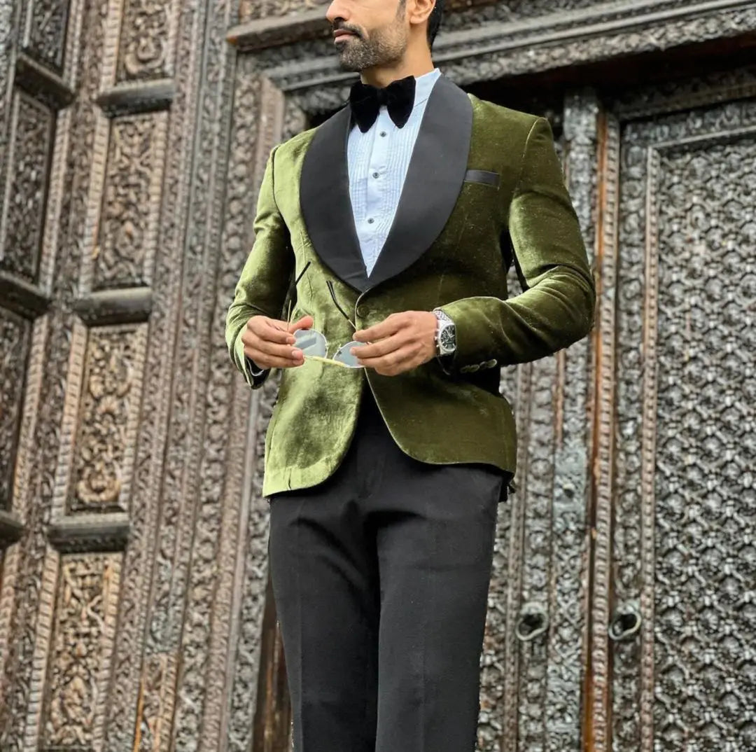Sumérgete en la elegancia con este nuevo traje de terciopelo de dos piezas, diseñado para el caballero moderno. Este sofisticado conjunto incluye un lujoso blazer de terciopelo con acabado satinado y solapas anchas, combinado con un pantalón negro a medida. El cierre de un solo botón le da un toque elegante, haciéndolo perfecto para ocasiones formales como graduaciones, bodas y eventos especiales. Disponible en tallas grandes, este traje garantiza un ajuste cómodo y favorecedor para todo tipo de cuerpos. Realza tu vestuario formal con este elegante traje a medida, ideal para novios y cualquiera que busque causar una buena impresión.