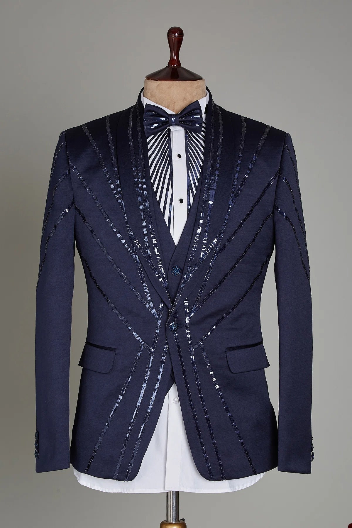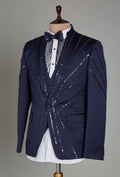 Trajes de boda azules para hombre con lentejuelas, hechos a medida, para negocios, novios, 2 piezas, abrigo, chaleco, ocasiones formales, fiesta, cantante, disfraz hecho a medida.