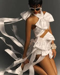 Nuevos minivestidos de alta costura sexys con lazo y cuello halter para mujer, elegantes vestidos de cumpleaños para niñas, minivestidos únicos para citas y fiestas.