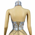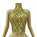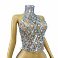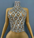 Nuevo Top de vendaje de malla transparente sexy con brillantes diamantes de imitación para mujer, ropa para fiestas, celebraciones, desfiles de moda, disfraz para escenario