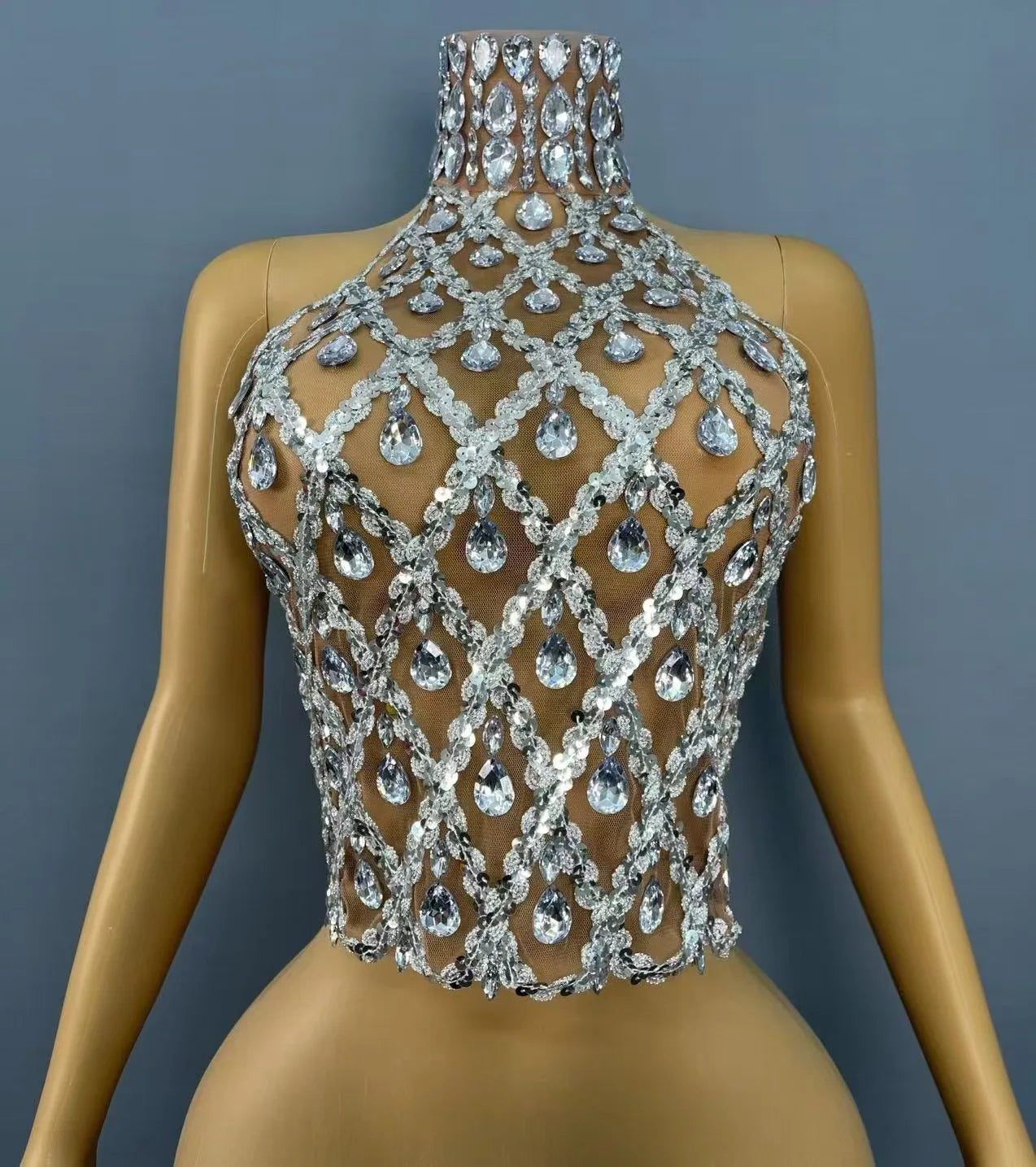 Acapara todas las miradas en tu próximo evento con este impresionante top bandage con pedrería para mujer. Con un sexy diseño de malla transparente adornado con brillantes pedrería, este top es perfecto para fiestas, celebraciones, desfiles de moda y presentaciones. Su audaz silueta bandage se adapta a tus curvas para un look impactante que atrapa la luz y destaca entre la multitud. Luce un glamour deslumbrante y un estilo inolvidable con esta deslumbrante pieza.