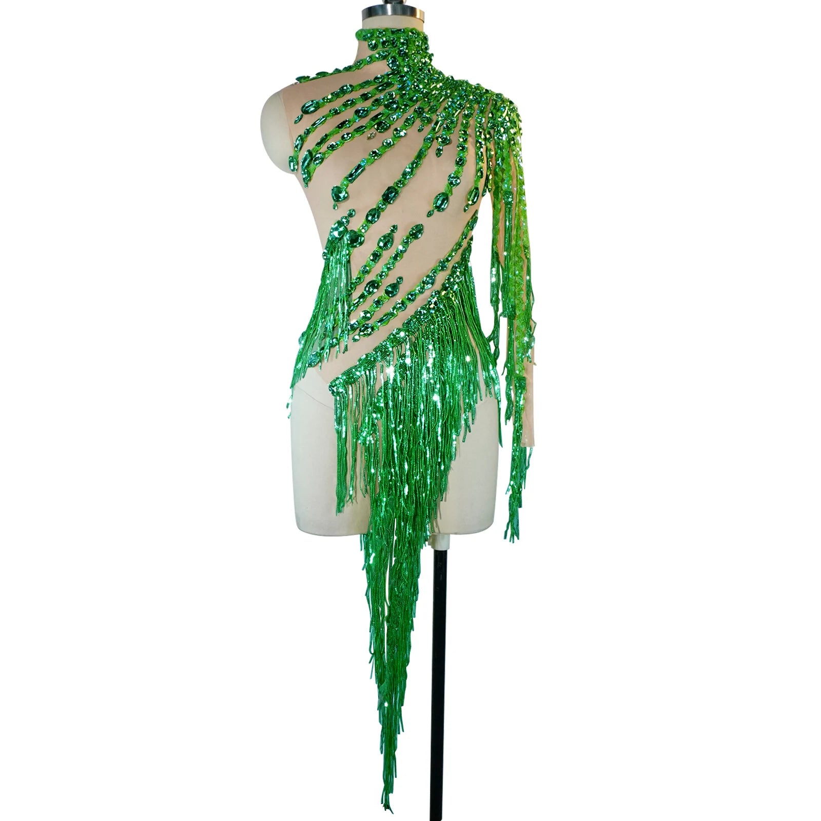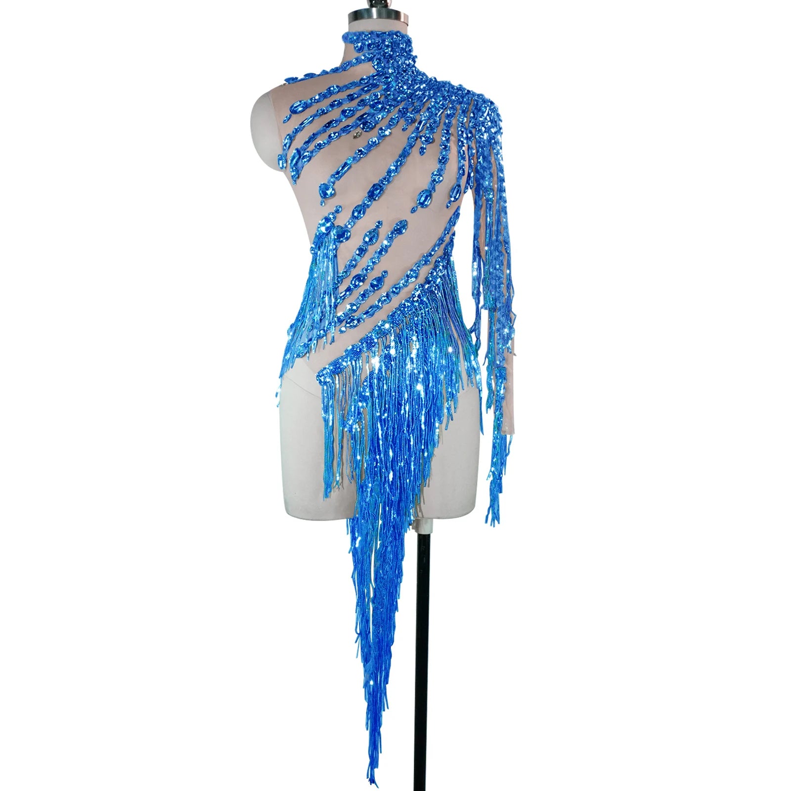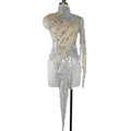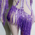 Introduce a high-energy, eye-catching stage piece: the New Sparkly Tassels Dress for Women — a sexy, mesh-perspective mini/short dress with shimmering tassels and crystal accents designed for club performers, singers, dancers, and stage shows. Built to catch light and movement, this costume blends glamour with functional performance features