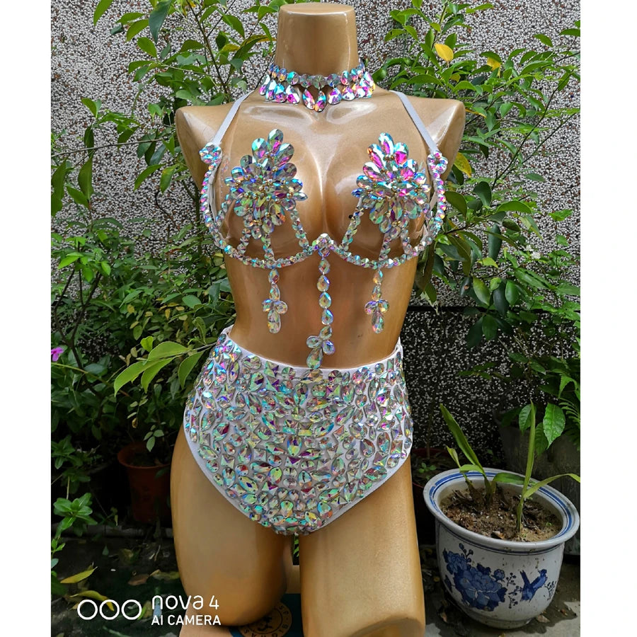 Nuevo conjunto de sujetador y pantalones de cintura alta para danza del vientre para mujer, disfraz de samba para carnaval, ideal para bailarinas de discoteca y escenarios.