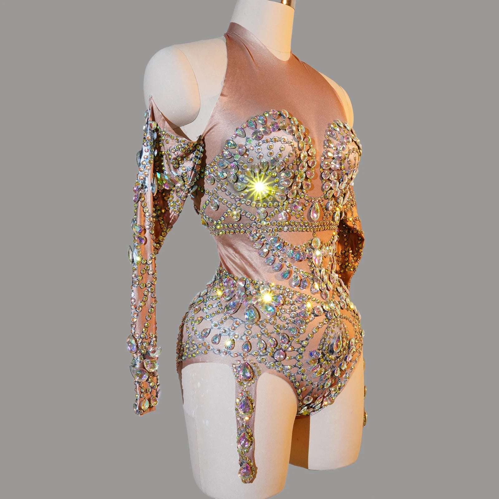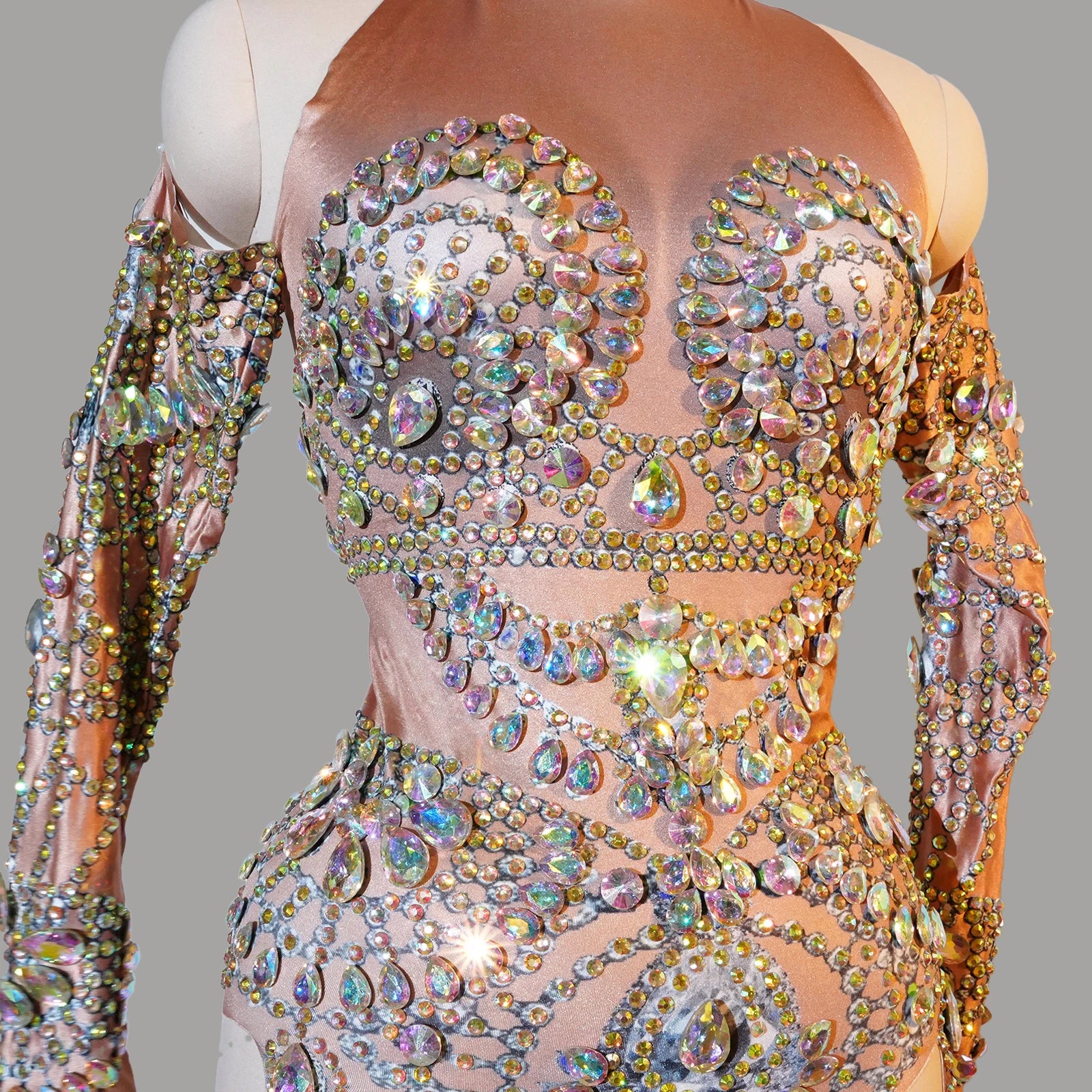 Traje de baile de discoteca, bar, actuación, escenario, fiesta nocturna, celebración, diamantes de cristal brillantes, mono sexy, drag