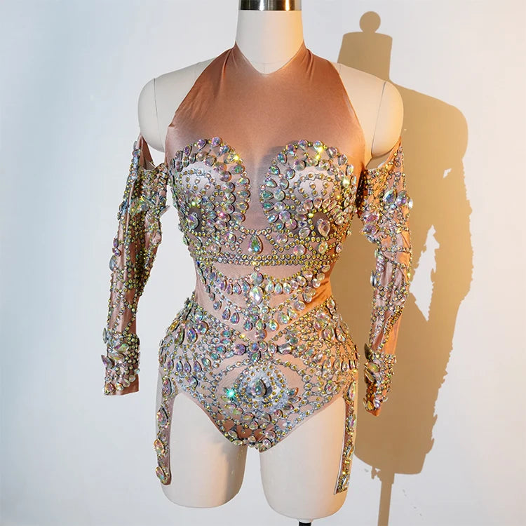 Domina la noche con este sensacional body con brillantes cristales, diseñado para bailarinas de bar, drag queens y artistas que buscan ser el centro de atención. Diseñado para brillar bajo las luces del escenario, este sexy mono de una pieza cautiva con su deslumbrante conjunto de cristales y su brillo glamuroso. Perfecto para espectáculos en discotecas, fiestas nocturnas y celebraciones inolvidables, su ajuste ceñido brinda comodidad y confianza en cada movimiento. Luce con estilo y deja que tu estrella interior brille con este impresionante conjunto para actuaciones.