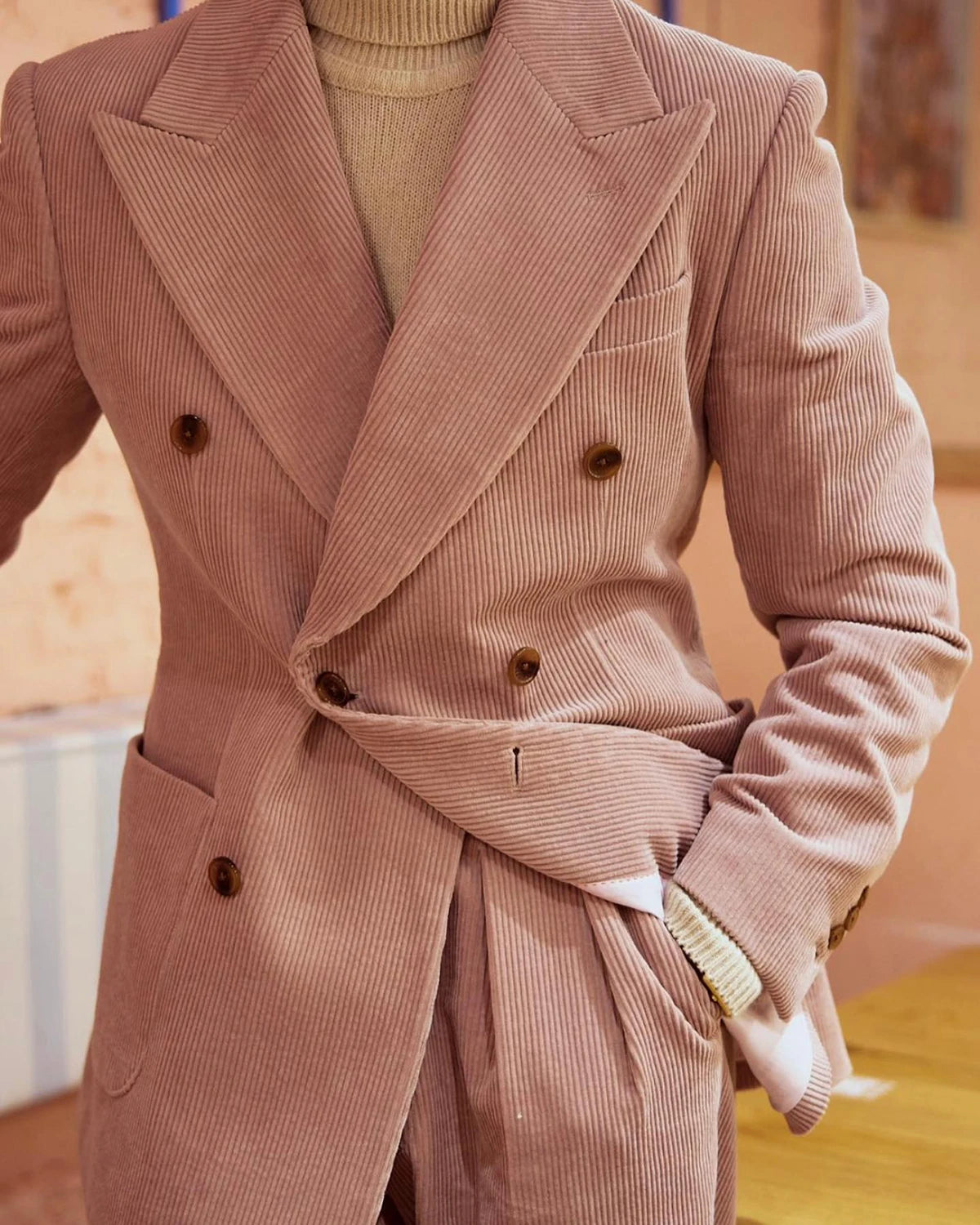 Chaqueta y pantalón de pana rosa para hombre, 2 piezas, cruzado, para novio, ceremonia, esmoquin formal de boda