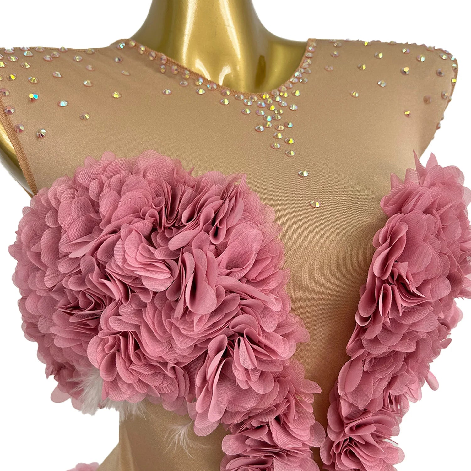 Bloom with confidence in this pink flower sparkly rhinestone bodysuit—where playful style meets show-stopping glamour. Crafted from stretchy, high-quality spandex for a flawless, tight-fitting silhouette, this outfit features dazzling rhinestone accents and floral designs that shimmer under the lights. The fitted shorts provide comfort and freedom of movement, making it perfect for dance performances, festivals, parties, or any celebration where you want to sparkle. Step into the spotlight and let your vibrant personality shine in this eye-catching performance outfit!