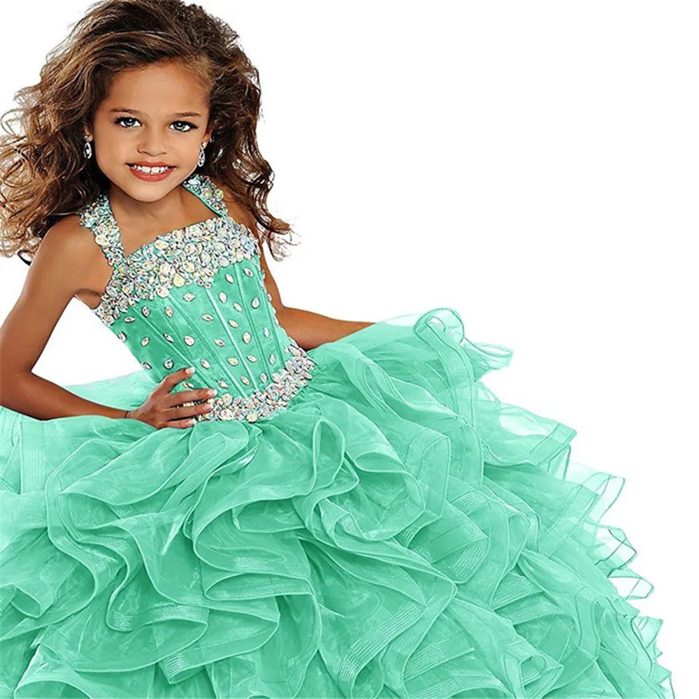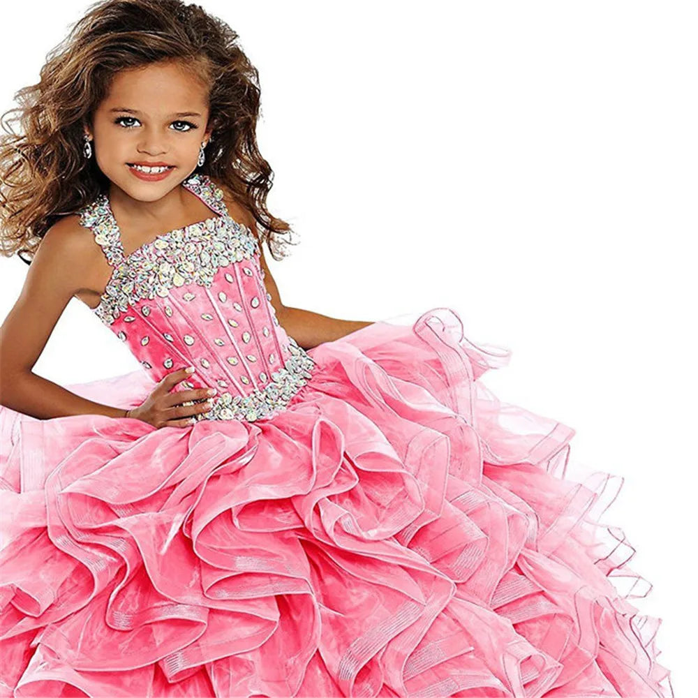 Vestido de princesa rosa para niña, con encaje, abullonado, para niña de flores, bonito vestido de cumpleaños para niña, vestido de fiesta de boda, vestido de bebé