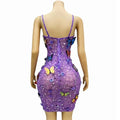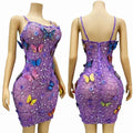 Purple Butterfly Rhinestones Dress Women Singer Jazz Dance Costume Stage Celebrate Party Outfits Festival Dresses