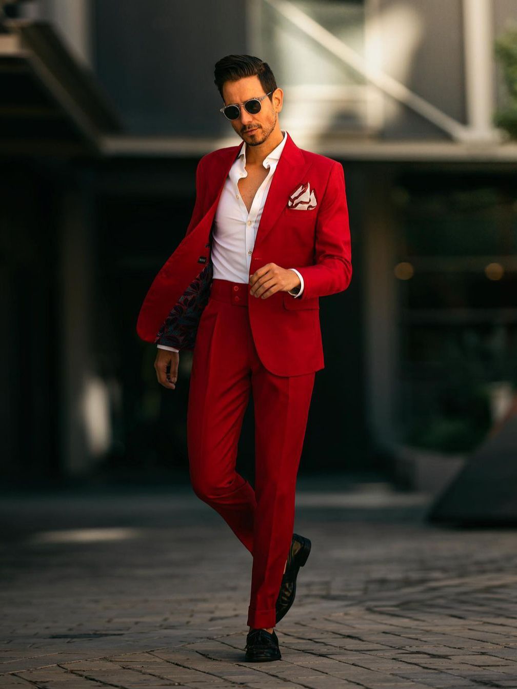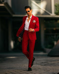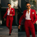 Trajes de caballero rojos nuevos para hombre, dos piezas, abrigo, pantalón, paño ancho, auténticos, a medida, clásicos, para bodas, ocasiones formales.