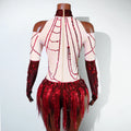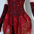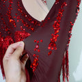 Red Sequin Tassels Bodysuits Sexy Women Stage Outfit Pole Latin Dance Competition Leotard Nightclub Party Drag Queen Costumes