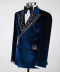 Retro Men's Suit Rhinestone Beaded Blazer Velvet One Piece Peaked Lapel Double Breasted Outfits Coat Customized Only Jacket