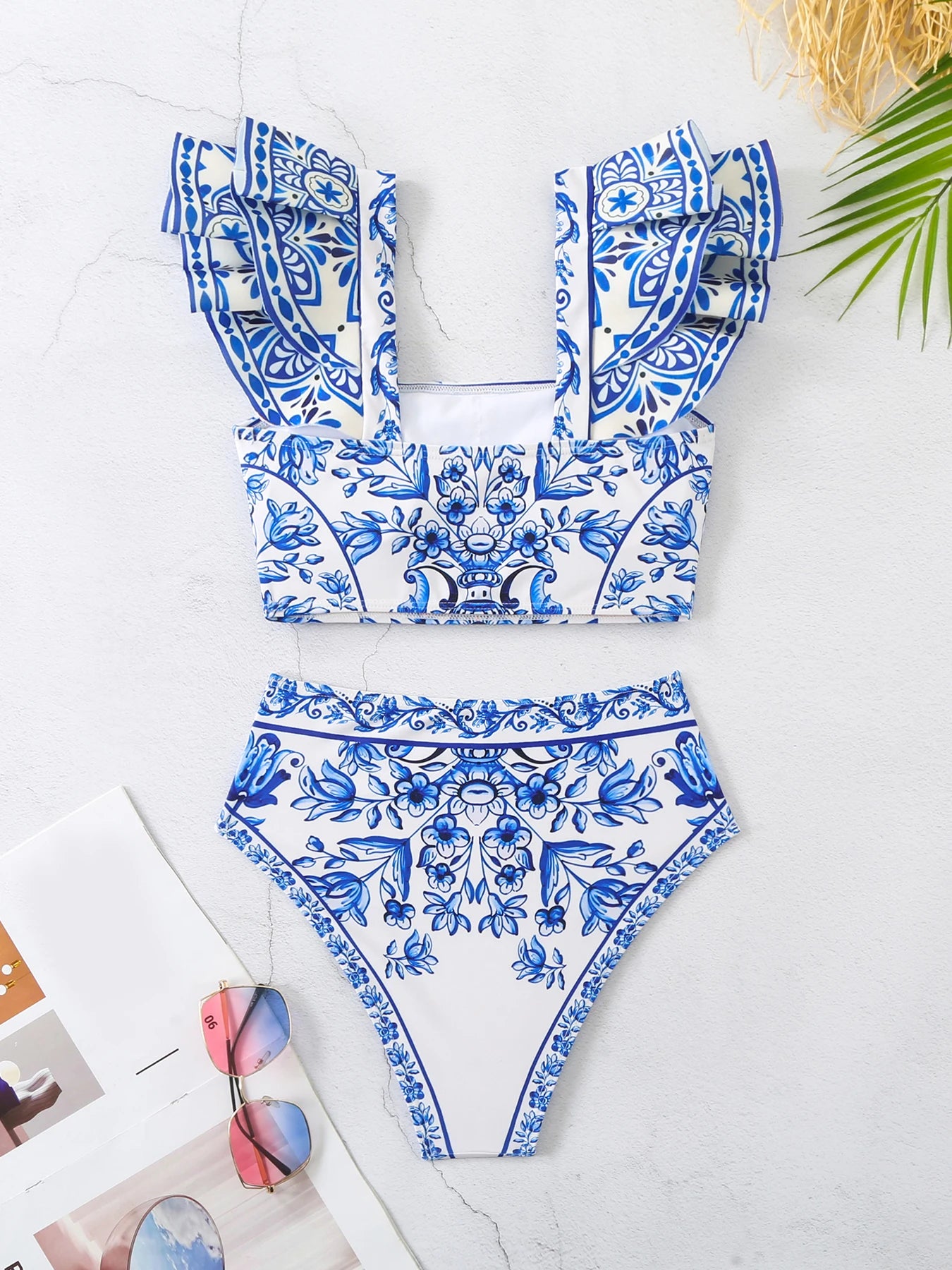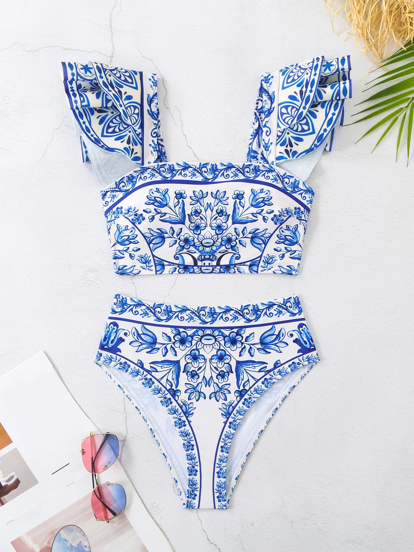 Ruffle Shoulder Bikini Set Women Two-Piece Swimsuit Trend New Sexy Women`s Bathing Bodice Beach Suit Biquini Female Clothes