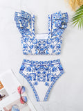 Turn heads at the beach with this stylish ruffle shoulder bikini set for women. This modern two-piece swimsuit features a flirty, ruffled shoulder design and a form-fitting bathing bodice for a fashionable and sexy look. Ideal for beach days or pool parties, this trendy bikini offers both comfort and style, making it the perfect choice for women who want to make a statement in their swimwear.