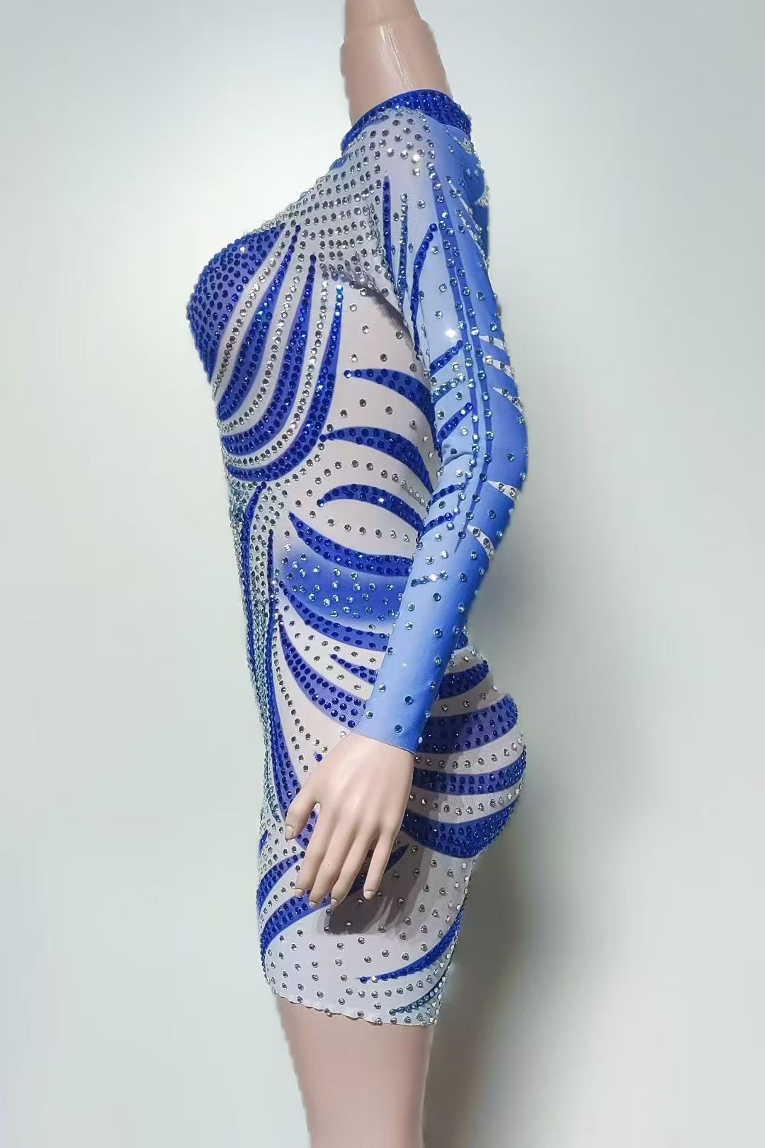 Rulan Luxury Rhinestone Mesh Jumpsuit Shorts Tight and Sexy Singer Models Nightclub Bar Party Performance Costumes