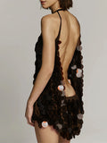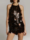 Shine at any event in this stunning sequined halter mini dress for women. Featuring a loose, sleeveless design with a dramatic large backless cut and a chic neck-hanging strap, this short dress exudes sexy sophistication. Perfect for socialites and special occasions, its glittering sequins and modern silhouette ensure you’ll stand out with effortless glamour.