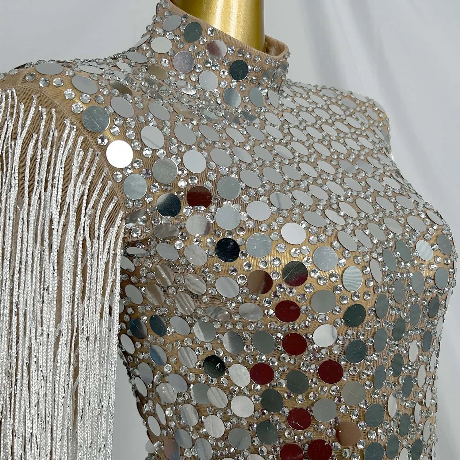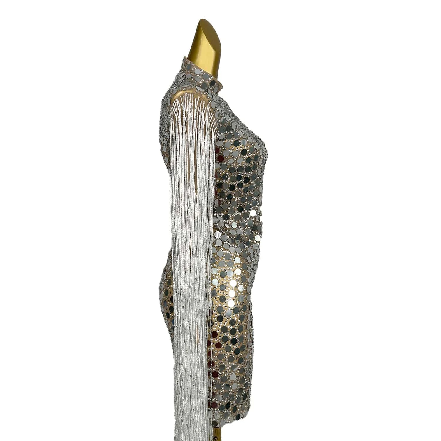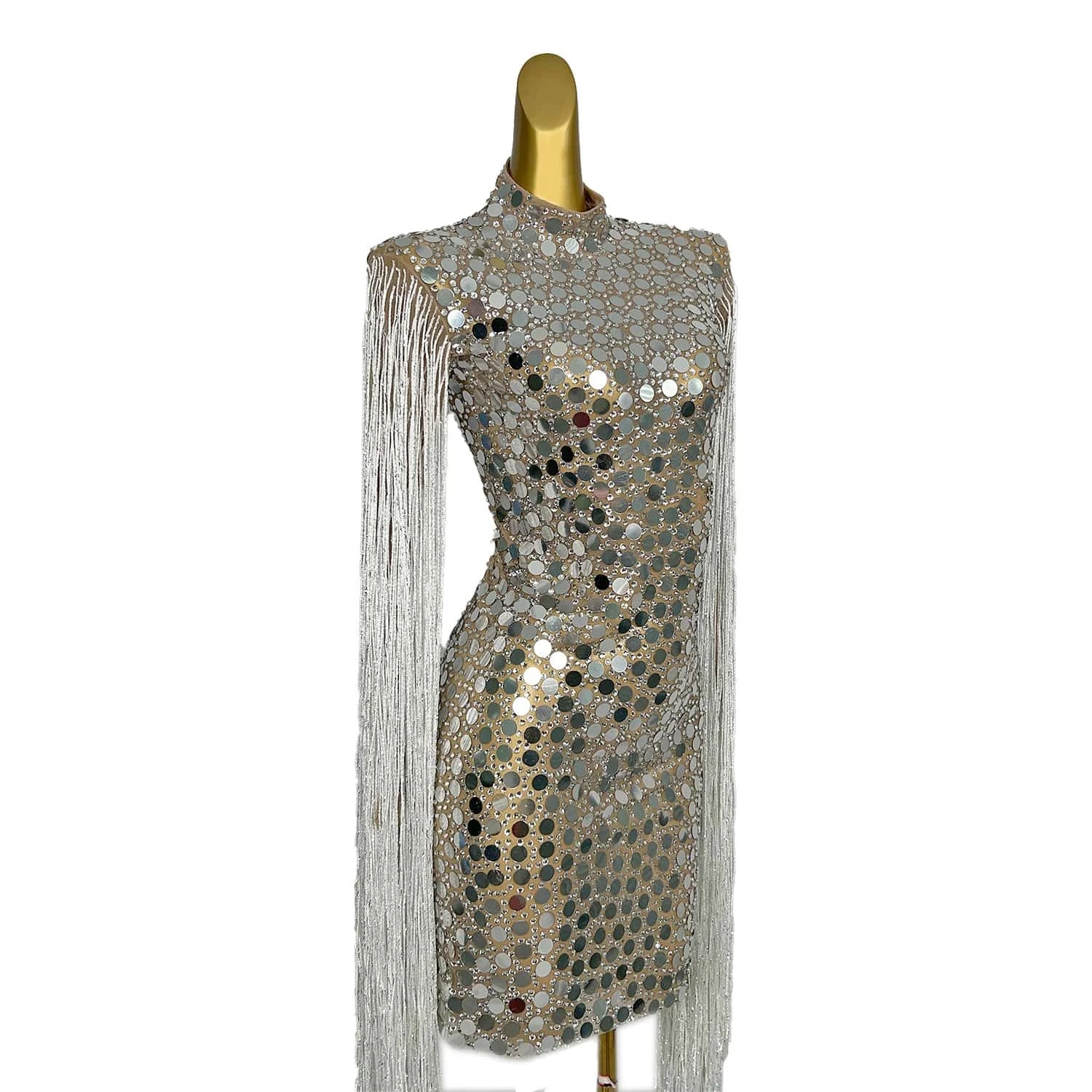 Sequins Rhinestones Tassel Short Dress Celebrate Prom Birthday Party Female Stage Costume Nightclub Dance Outfit