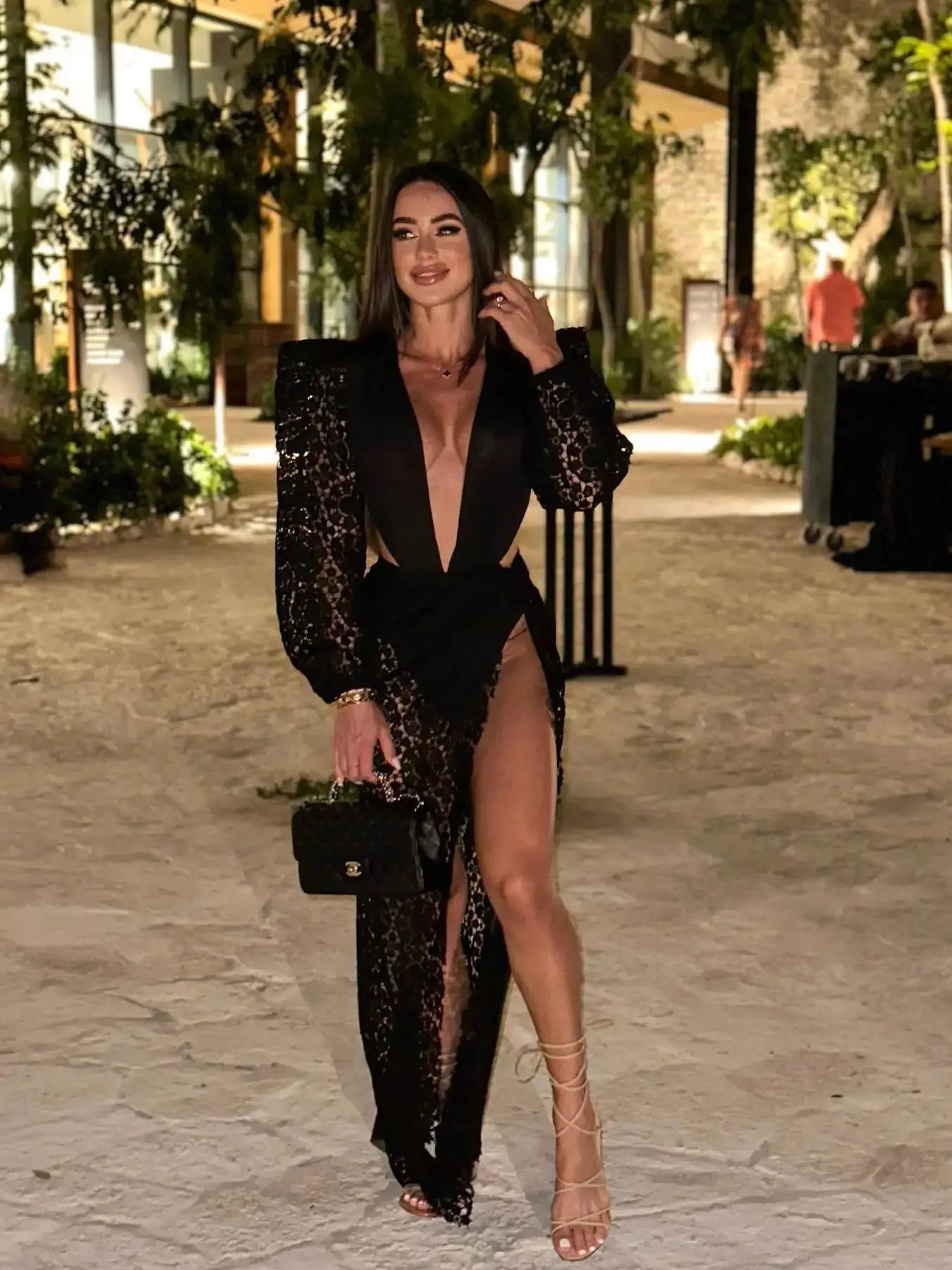 Conjunto de 2 faldas sexys y elegantes de manga larga para mujer, vestido de fiesta de verano, vestido de banquete sin cintura, vestido elegante para mujer