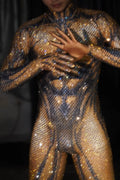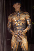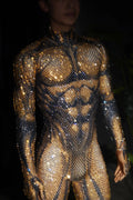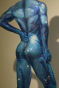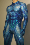 Elevate your stage presence with this Sexy Blue Full Rhinestones Stretch Men’s Dance Jumpsuit — a high‑impact, performance‑ready outfit engineered for dancers, singers, club performers, and anyone who wants to command attention at prom, birthday parties, evening shows, or special events. This one‑piece leggings-style jumpsuit fuses a sleek masculine silhouette with dense blue rhinestone embellishment for maximum sparkle under stage lights and camera flashes