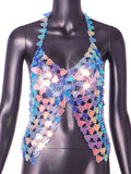 Sexy Halter Metal Sequin Corset Crop Top Women Summer See Through Tank Top Glitter Night Club Rave Outfits Y2k Beach Party Tops