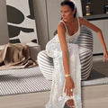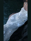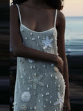 Embrace summer chic with this Sexy Knitted Shells and Pearls Beach Dress for women. Designed with a flattering low-cut neckline and elegant sling straps, this long, hollow-out knit dress is beautifully adorned with real shells and pearl accents for a unique, coastal-inspired look. Perfect for casual outings, beach parties, or stylish summer gatherings, this dress combines effortless elegance with playful, eye-catching details—making it a must-have for your warm-weather wardrobe.
