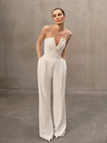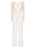 Acapara todas las miradas con este elegante conjunto de dos piezas para mujer: un sexy body de malla de manga larga adornado con perlas y un elegante mono blanco sin tirantes. Perfecto para eventos de noche, desfiles o ocasiones especiales, este conjunto combina sofisticación y glamour para un look realmente impactante.